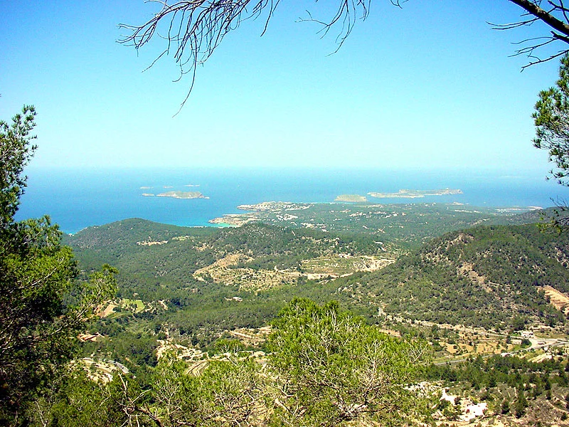 In San José, very close to Cala d’Hort, is the highest point of the island of Ibiza: the mountain of Sa Talaia, with 475 meters of height. You can start the route from the Church of San José, going up the street of Sa Talaia, which leads to a dirt road that will take you to a path through which you will enter the forest. Continue following the directions on the way.
