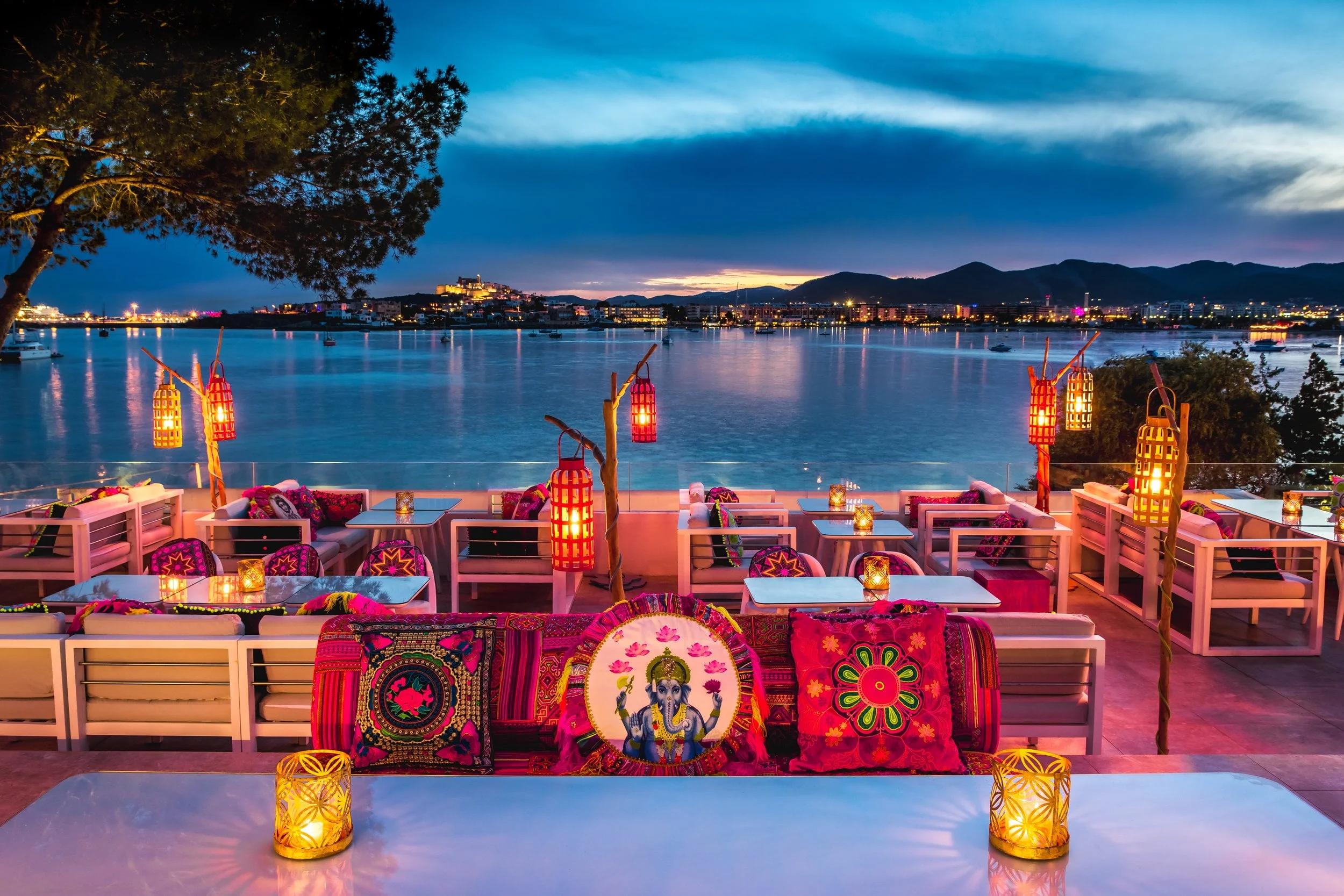 Restaurante Sa Punta fine dining is located by Cap Martinet and offers a unique, chilled out vibe in a magnificent setting. The rocky shoreline contrasts with the colourful and stylish décor inside and the innovative menu offers diners a real different experience as they can gaze out to the striking Dalt Villa. With the glittering lights of the city of Ibiza reflecting on the water below, this is a really special experience, and the rooftop terrace offers a relaxed feeling under the shining stars.