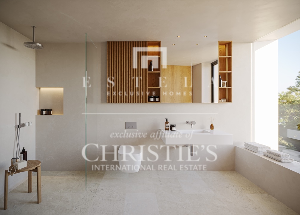 Casa Vera ist eine exklusive Oase der Ruhe und des Luxus auf einem sanft abfallenden, terrassierten Grundstück in der Gegend von Cap Martinet auf Ibiza. Die bestehenden Steinmauern wurden sorgfältig restauriert, wodurch der ansteigende Weg zur Villa aufgewertet wird. Der Entwurf ist um eine geteilte Längsachse organisiert, in der mehrere Kraftlinien in einem Fluchtpunkt zusammenlaufen und von Anfang an ein faszinierendes architektonisches Erlebnis bieten. Eine zickzackförmige Treppe, die von üppigem Grün umgeben ist, verbindet den Parkplatz mit dem Eingang. Im Hauptgeschoss sind die Wohnräume auf verschiedenen, versetzten Ebenen angeordnet, wobei Wohnzimmer, Esszimmer und Küche in aufsteigender Reihenfolge angeordnet sind. Diese Anordnung gipfelt auf der obersten Ebene des Erdgeschosses, wo die Küche und eine große Terrasse mit Swimmingpool den Panoramablick auf Dalt Vila genießen. Auf der unteren Ebene befinden sich zwei weitere Schlafzimmer und ein multifunktionaler Raum, die der Villa noch mehr Flexibilität verleihen. Vom Hauptgeschoss aus zweigt der aufsteigende Weg ab. Eine geradläufige Treppe führt zu drei Schlafzimmern mit eigenem Bad im Obergeschoss, darunter eine Master-Suite in bester Lage mit Fernblick. Eine letzte Treppe führt auf das begrünte Dach, den Endpunkt dieses sorgfältig inszenierten Rundgangs durch das Haus. Die verschiedenen Faltungen und Volumen des Gebäudes erzeugen ein dynamisches Spiel von Räumen - Ausdehnungen und Kontraktionen -, die das Gefühl von Weite und Verbindung mit der Umgebung verstärken. Holzpalisaden bilden Pergolen, Geländer und Schutzelemente, die den Übergang zwischen der Villa und dem umgebenden Wald abmildern. Eine naturnahe Begrünung umschließt das Grundstück und verleiht den Dächern des Hauses eine attraktive Note. Im Inneren sorgen hochwertige Ausstattungen und die Expertise eines Innenarchitekten für ein warmes, zeitgemäßes Ambiente, in dem man sich sofort zu Hause fühlt. Der Baubeginn von Casa Vera ist für Juni 2025 geplant, was seinen Charakter als spannendes und zukunftsorientiertes Projekt unterstreicht. Die in Zusammenarbeit mit einem renommierten lokalen Architekten entworfene Villa stellt eine perfekte Synthese aus modernem Komfort und natürlicher Schönheit dar. Dank ihrer einzigartigen Ausrichtung - mit Blick nach Westen, um den Sonnenuntergang zu beobachten, und nach Süden, um den Sonnenaufgang zu bewundern, ein seltenes Phänomen auf Ibiza - fängt Casa Vera perfekt die Essenz der Insel ein: Luxus, Ruhe, spektakuläre Panoramen und eine nahtlose Verbindung mit der umgebenden Natur.