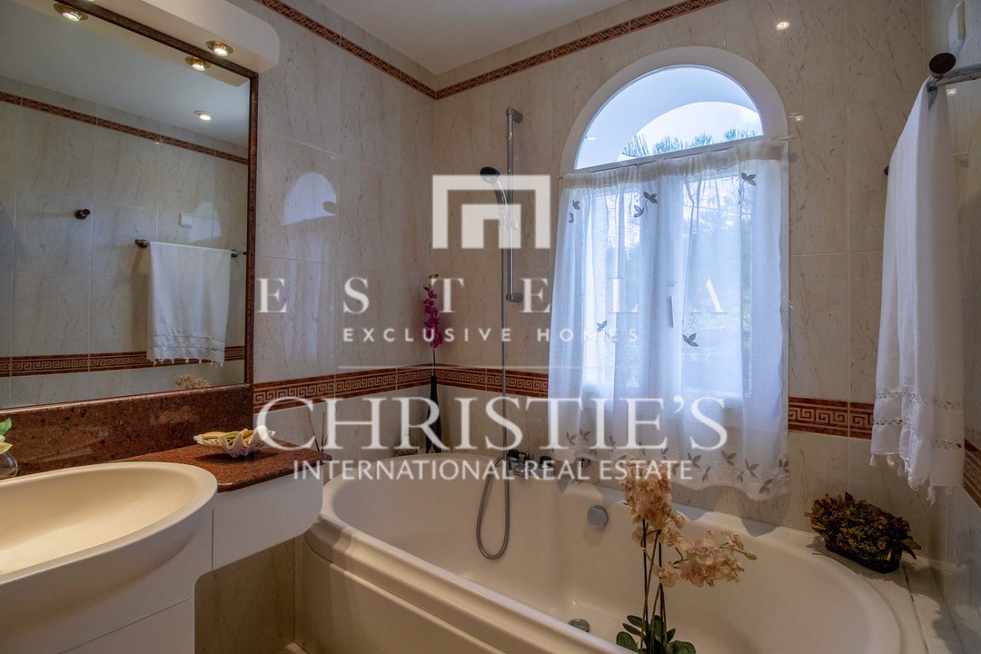 Das Haus selbst wurde vom Eigentümer vor 29 Jahren erbaut und bis ins kleinste Detail gestaltet. Innen und außen finden Sie die charakteristischen ibizenkischen Steinmauern, die dem Haus ein warmes und einladendes Ambiente verleihen. Der Haupteingang ist über eine schöne Treppe erreichbar, die an der Seite mit rosa Blumen verziert ist. Die elegante Holztür führt Sie in das helle, offene Wohnzimmer mit schönen großen Fenstern vom Boden bis zur Decke auf beiden Seiten. Die Küche ist komplett ausgestattet, sehr geräumig und verfügt über einen separaten Essbereich, der im Winter geschlossen oder im Sommer geöffnet werden kann, um den Küchenbereich zu vergrößern und den ultimativen Lebensstil im Freien zu erleben. Im Obergeschoss befinden sich die perfekt gepflegten Schlafzimmer, die alle in einem klassischen und authentischen Design eingerichtet sind und dem Haus seinen einzigartigen Charakter verleihen. Die Aussicht von den Schlafzimmern aus ist ebenfalls atemberaubend, denn Sie blicken über den Garten und von einigen Zimmern oder von den Terrassen aus können Sie sogar Dalt Vila und Formentera sehen. Das Hauptschlafzimmer hat einen großen begehbaren Kleiderschrank, der viel Stauraum bietet. Die Hauptbadezimmer sind mit Marmorfliesen ausgestattet, die ein luxuriöses Gefühl vermitteln. Für diejenigen, die es lieben, sich im Spa zu entspannen, gibt es auch eine Sauna und einen Whirlpool, in denen Sie sich voll und ganz entspannen können. Darüber hinaus verfügt diese wunderbare Residenz über einen Keller mit einem großen Raum und einer kleinen Küche, die für die Unterhaltung von Gästen oder als Spielzimmer genutzt werden kann. Außerdem gibt es ein separates Bett und ein Badezimmer, was Ihnen die Möglichkeit gibt, einen unabhängigen Raum für Servicepersonal oder Familie zu schaffen. Darüber hinaus gibt es unter der Treppe versteckt einen Weinkeller ohne Fußbodenheizung. Selten findet man eine so familiäre, charmante und perfekt gepflegte Villa wie diese. Dieses herrliche Grundstück ist mit Skulpturen und Kunstwerken am Eingang und im Gartenbereich geschmückt, was es zu einem einzigartigen und besonderen Anwesen macht. Der Eingang ist von wunderschönem Grün und Blumen umgeben, die eine einladende und friedliche Atmosphäre schaffen. Sie werden sofort die warme Farbe des Hauses bemerken, die "Tierra del sur" heißt und perfekt zum Haus passt. Wenn es Zeit ist, sich zu entspannen, gehen Sie auf die authentische Veranda. Genießen Sie Ihren Abendcocktail am Pool oder essen Sie in der orientalischen Sitzecke aus hochwertigem Iroko-Holz. Es gibt eine Außenküche mit einem schönen Steinofen, in dem Sie frisches Brot backen oder Familienmahlzeiten zubereiten können. Außerdem gibt es eine Waschküche im Freien neben dem Haus. Oder genießen Sie einfach einen Spaziergang durch den Garten mit seinen vielen schönen Ecken und Sitzecken, während Sie den entspannenden Klängen des Springbrunnens am Swimmingpool lauschen. Es gibt alle möglichen Annehmlichkeiten, um einen schönen Sommernachmittag in diesem wunderschönen, ruhigen Garten zu verbringen. Die Residenz verfügt auch über ein automatisches Tor, das die Einfahrt bequem macht und zusätzliche Sicherheit bietet. Sie finden eine überdachte Veranda mit Platz für zwei Autos. Diese innen und außen perfekt gepflegte Villa bietet alles, was Sie brauchen.