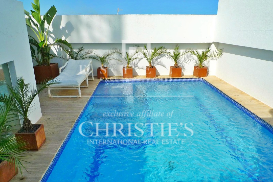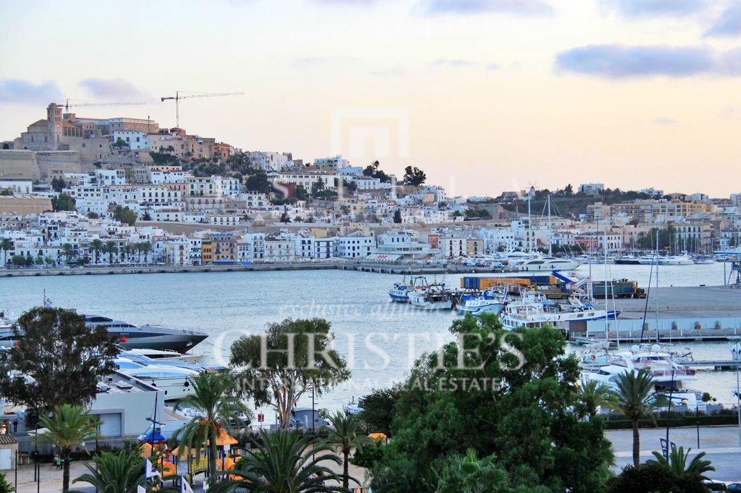 Penthouse zur Miete mit privatem Pool und Chill-out-Bereichen in Marina Botafoch, Ibiza. Ein einzigartiges Objekt mit privilegierter Lage im luxuriösesten Viertel von Ibiza, mit Blick auf den Hafen und Dalt Vila, nur wenige Gehminuten vom Stadtzentrum, vom Strand und den bekanntesten und exklusivsten Restaurants und Clubs wie Lío oder Pacha sowie Designerläden wie Saint Laurent, Gucci usw. entfernt. Der Aufzug führt direkt in die Wohnung, ohne dass der Flur mit einer anderen Wohneinheit geteilt wird. Das Innere wurde vollständig mit hochwertigsten Materialien renoviert und mit sorgfältig ausgewählter Dekoration ausgestattet. Das Gebäude verfügt über private Parkplätze, Sicherheitskameras rund um das Gelände und ein Projekt zur Umzäunung des Grundstücks.