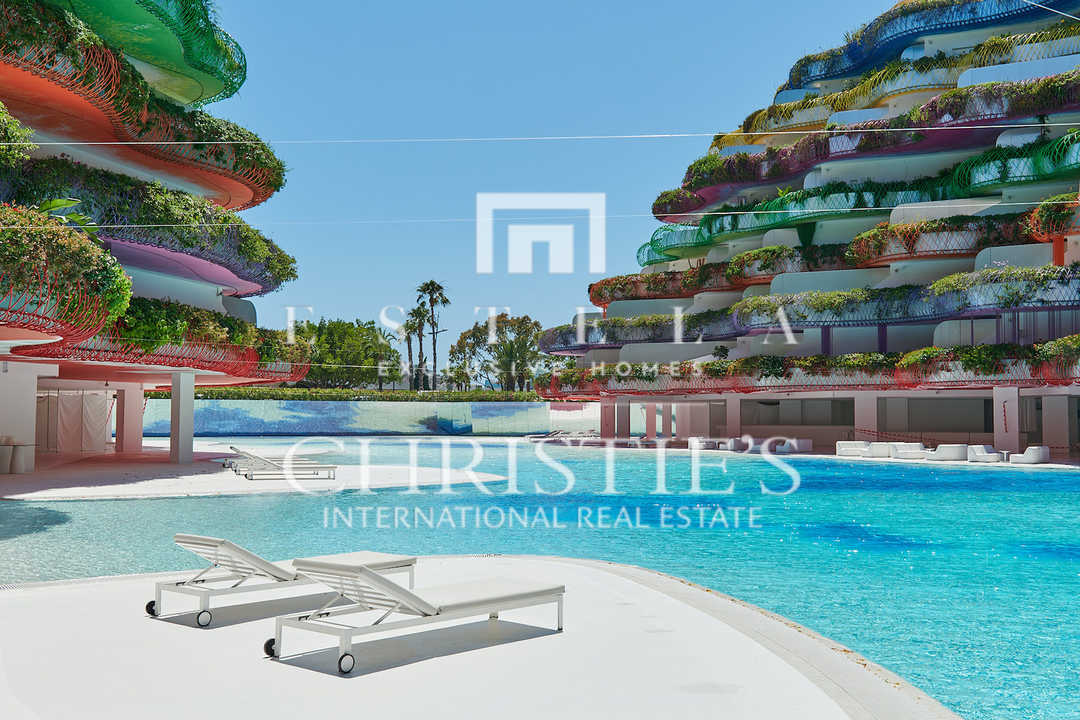 Las Boas ist das emblematischste Gebäude der Insel Ibiza und liegt in der besten Gegend von Marina Botafoch. Es wurde vom Architekten Jean Nouvel entworfen und bietet ein einzigartiges Wohnerlebnis mit Panoramablick auf die Altstadt von Ibiza, die Insel Formentera und das Meer. Individuell gestaltete und fertiggestellte Luxuswohnungen sind Unikate. Die verschiedenfarbigen Balkone machen es so originell. Schöne Gärten umgeben das Gebäude mit einem großen Gemeinschaftspool. Außerdem gibt es 1 Tiefgaragenplatz, ein Spa, einen Fitnessraum und einen privaten Club für die Bewohner. Die Immobilie verfügt über Klimaanlage, Hausautomation und Alarmanlage. Es ist eine geschlossene Wohnanlage mit 24 Stunden Sicherheit. Diese schöne Wohnung, persischen Stil, von 130m2 ist ein fünfter Stock und verfügt über 2 Schlafzimmer mit 2 Bädern en suite, ein schönes Wohn-Esszimmer, eine originelle Bar Möbel, eine schöne Küche mit Insel und eine große Terrasse von 35m2.