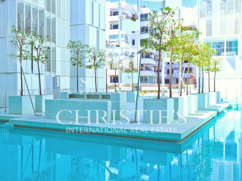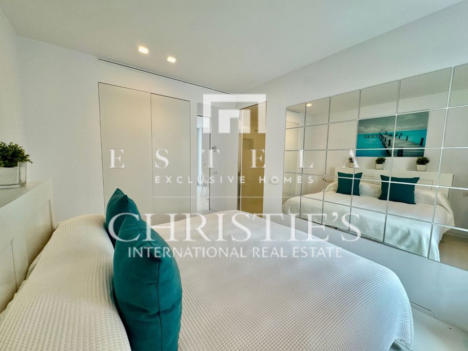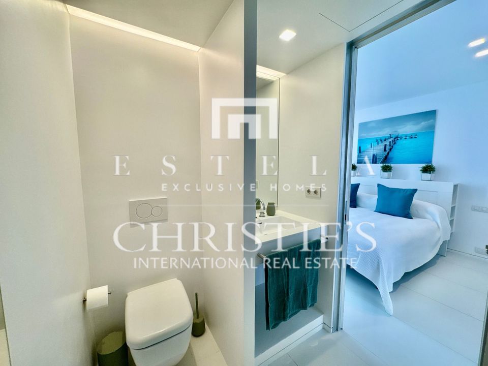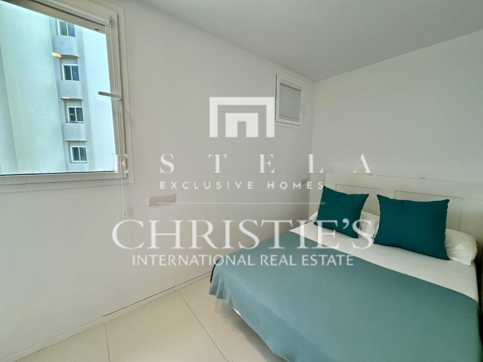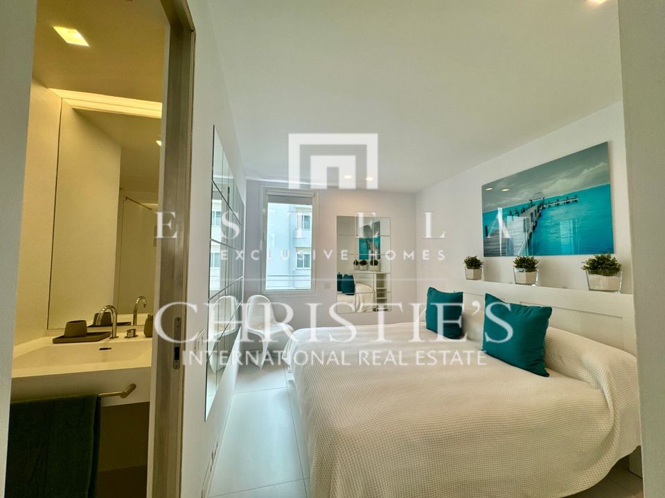 Wunderschöne Wohnung im Gebäude Patio Blanco in Marina Botafoch, Ibiza. Mediterran inspiriert und ein Meisterwerk von „Life Marina Ibiza”, entworfen vom berühmten Architekten Jean Nouvel. Es befindet sich im Herzen der Marina von Ibiza. Das Gebäude Patio Blanco ist vom Lebensstil eines traditionellen andalusischen Innenhofs inspiriert. Das Äußere weist Ähnlichkeiten mit typischen Häusern auf Ibiza auf, wie z. B. weiße Wände mit kleinen Fenstern. Die Botanik ist für die Gestaltung dieses Gebäudes von wesentlicher Bedeutung. Eine seiner Wände ist ein riesiger vertikaler Garten mit Bougainvillea und Jasmin. Es verfügt auch über eine Gemeinschaftsterrasse auf dem Dach mit Hängematten und Duschen. Von der komfortablen Tiefgarage aus haben Sie direkten Zugang per Aufzug zum Apartment, zum Pool und zur Dachterrasse. Das Gebäude verfügt über einen 24-Stunden-Sicherheitsdienst und einen Innenhof mit Orangenbäumen. Es liegt nur wenige Minuten von Ibiza-Stadt, dem schönen Strand von Talamanca mit seinen Strandbars, den berühmten Restaurants wie dem „Lio” oder dem berühmten „Pacha” und den schicksten Modegeschäften entfernt. Diese moderne Wohnung befindet sich im zweiten Stock, ist 80 m² groß und verfügt über 2 Schlafzimmer und 2 Badezimmer, ein Wohn-Esszimmer mit einer modernen, voll ausgestatteten offenen Küche und eine gemütliche Terrasse mit sehr schönem Blick auf den Poolbereich.