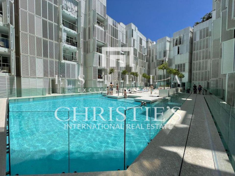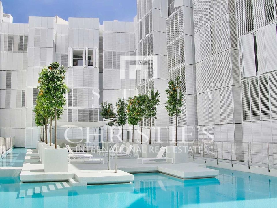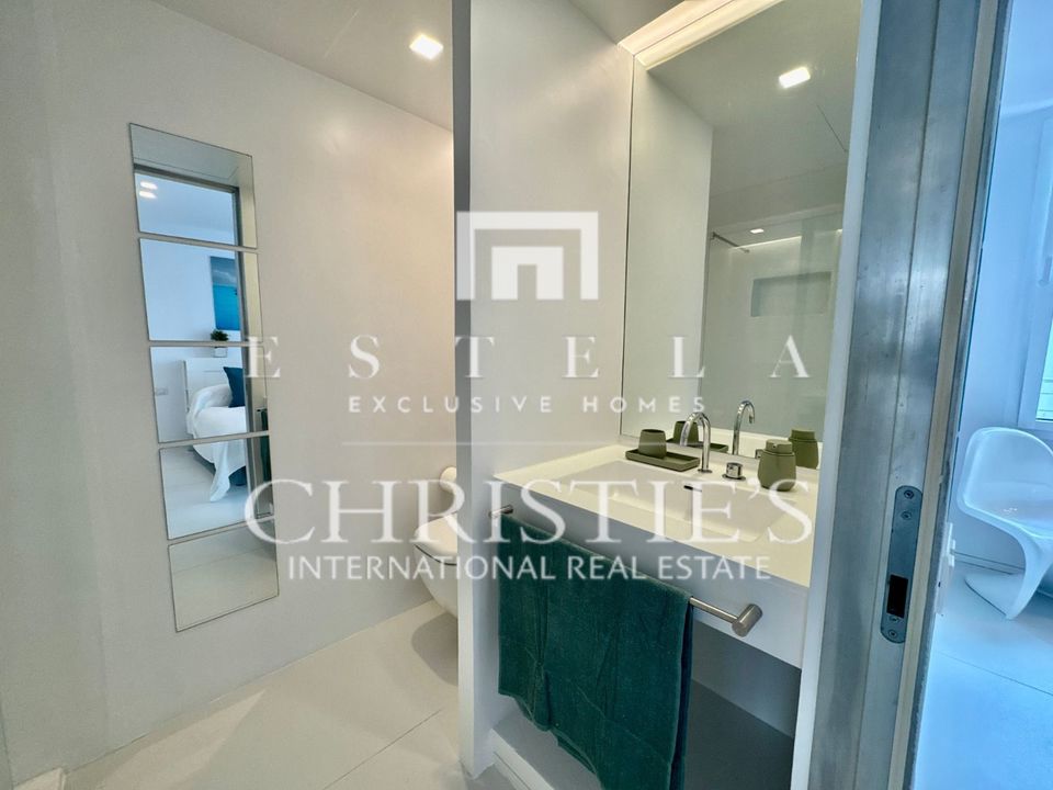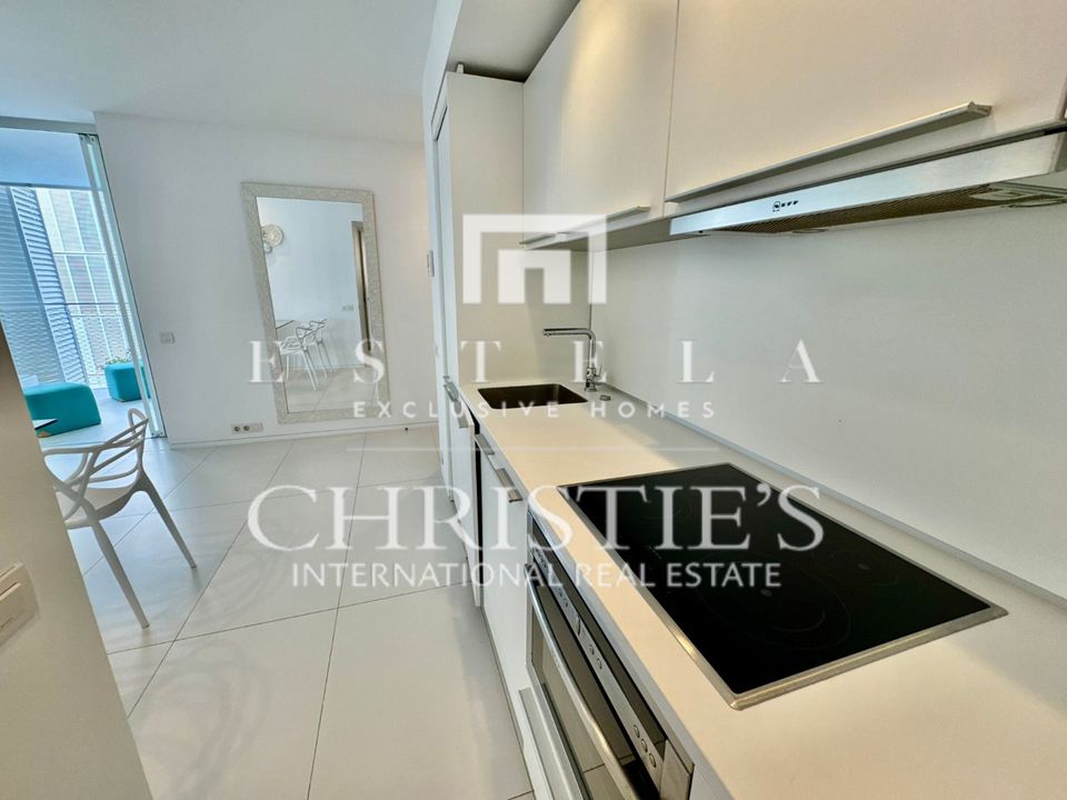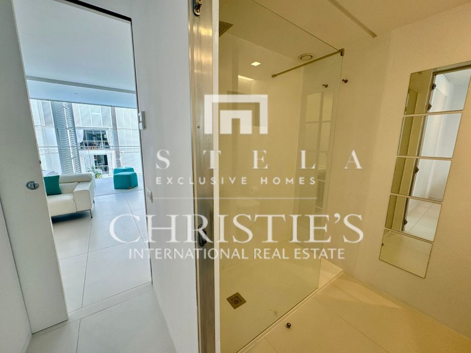 Wunderschöne Wohnung im Gebäude Patio Blanco in Marina Botafoch, Ibiza. Mediterran inspiriert und ein Meisterwerk von „Life Marina Ibiza”, entworfen vom berühmten Architekten Jean Nouvel. Es befindet sich im Herzen der Marina von Ibiza. Das Gebäude Patio Blanco ist vom Lebensstil eines traditionellen andalusischen Innenhofs inspiriert. Das Äußere weist Ähnlichkeiten mit typischen Häusern auf Ibiza auf, wie z. B. weiße Wände mit kleinen Fenstern. Die Botanik ist für die Gestaltung dieses Gebäudes von wesentlicher Bedeutung. Eine seiner Wände ist ein riesiger vertikaler Garten mit Bougainvillea und Jasmin. Es verfügt auch über eine Gemeinschaftsterrasse auf dem Dach mit Hängematten und Duschen. Von der komfortablen Tiefgarage aus haben Sie direkten Zugang per Aufzug zum Apartment, zum Pool und zur Dachterrasse. Das Gebäude verfügt über einen 24-Stunden-Sicherheitsdienst und einen Innenhof mit Orangenbäumen. Es liegt nur wenige Minuten von Ibiza-Stadt, dem schönen Strand von Talamanca mit seinen Strandbars, den berühmten Restaurants wie dem „Lio” oder dem berühmten „Pacha” und den schicksten Modegeschäften entfernt. Diese moderne Wohnung befindet sich im zweiten Stock, ist 80 m² groß und verfügt über 2 Schlafzimmer und 2 Badezimmer, ein Wohn-Esszimmer mit einer modernen, voll ausgestatteten offenen Küche und eine gemütliche Terrasse mit sehr schönem Blick auf den Poolbereich.