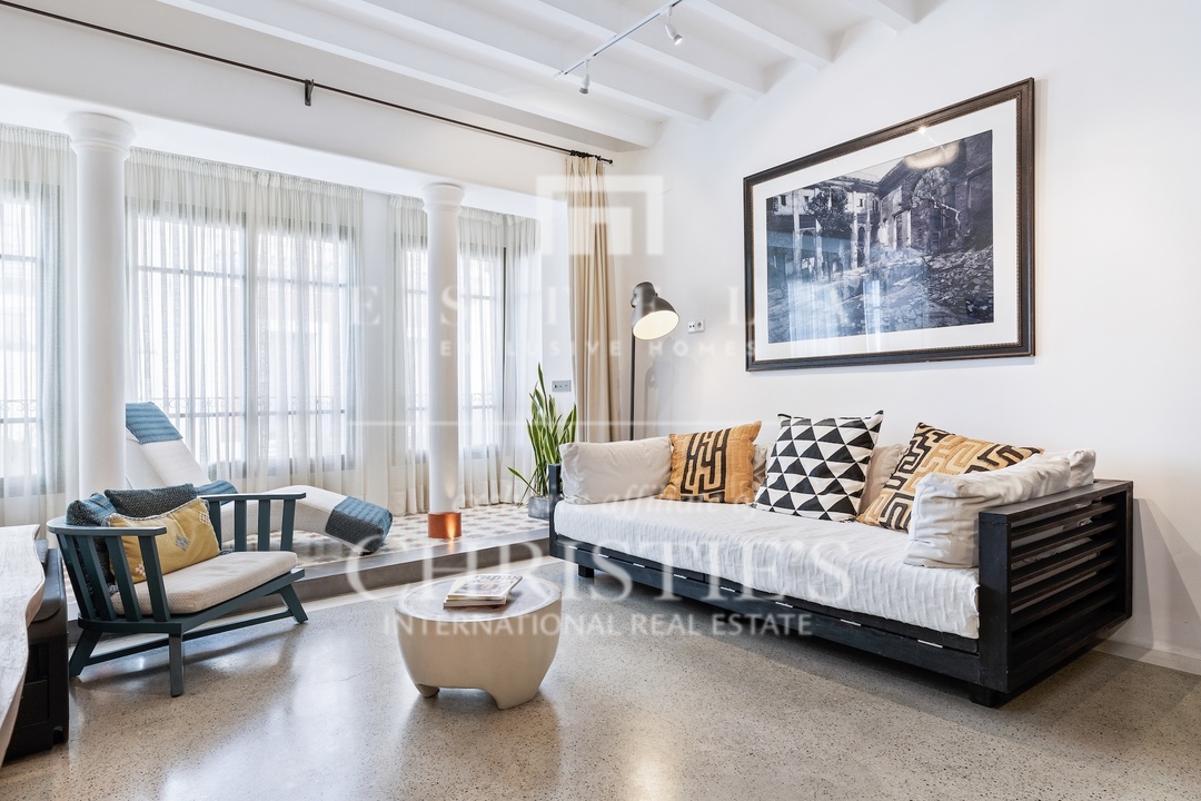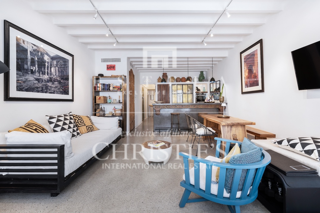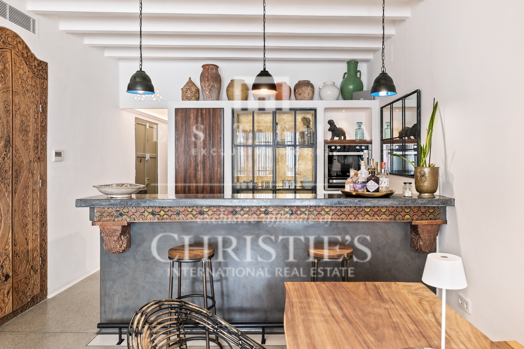 Preciosa vivienda de lujo ubicada en una de las zonas con más encanto y historia de Ibiza, el barrio de La Marina, juntas a las imponentes murallas que fueran declarada Patrimonio de la Humanidad por la Unesco en 1999. El piso ha sido completamente reformado en 2018, por un noto estudio de arquitectura de la isla, que investiga y combinas materiales autóctono con técnicas modernas, intentando que los elementos tradicionales sigan ocupando un lugar esencial y subsistan fusionando con nuevas tendencias. Esta pequeña joya de 60m2 se encuentra en la segunda planta de un edificio que solo consta de 3 viviendas. El piso cuenta con una preciosa cocina hecha a medida totalmente equipada, un original salón – comedor amueblado, un pequeño cuarto para la lavandería, una habitación doble con bañera y un baño completo con ducha. Los muebles, los acabados y los detalles decorativos hacen que el apartamento sea único en su estilo y emanan un ambiente cálido y acogedor.