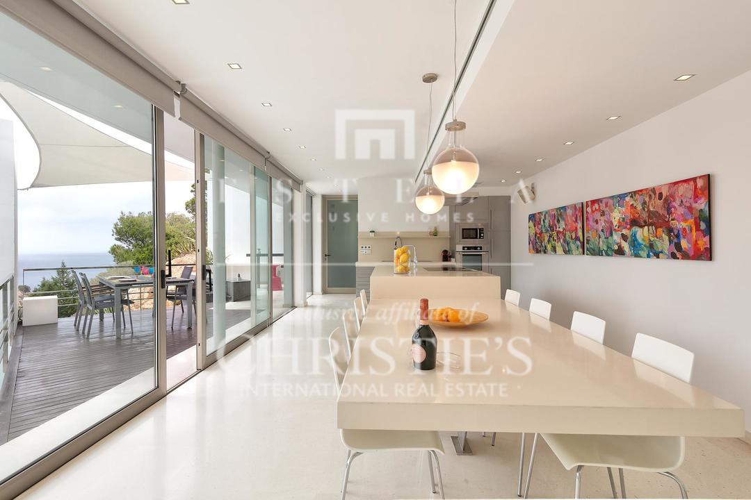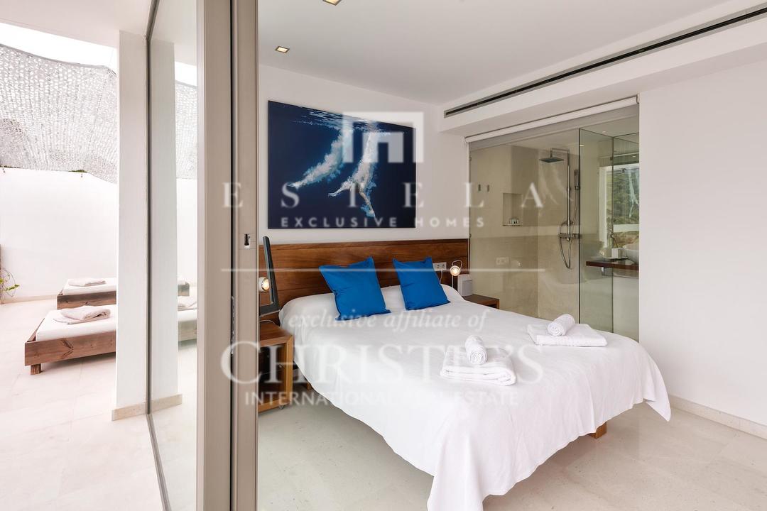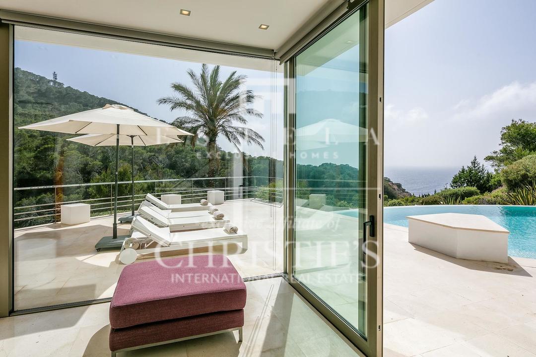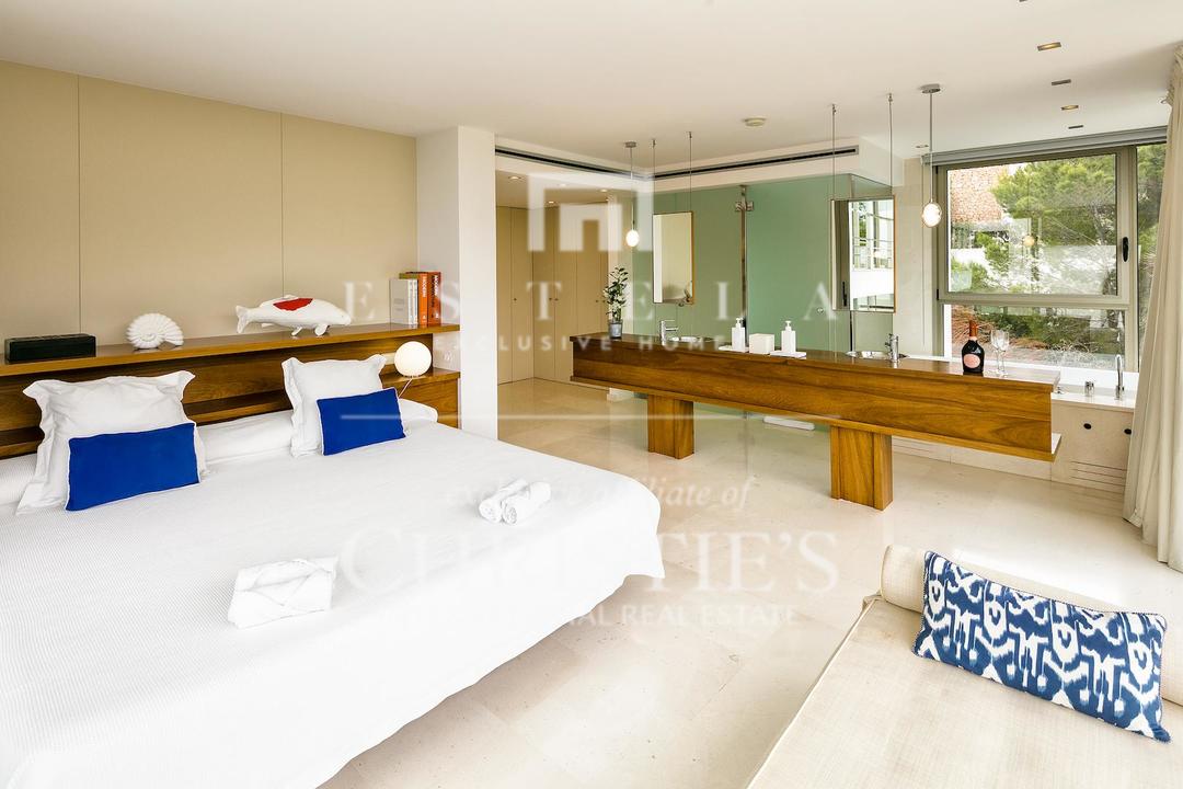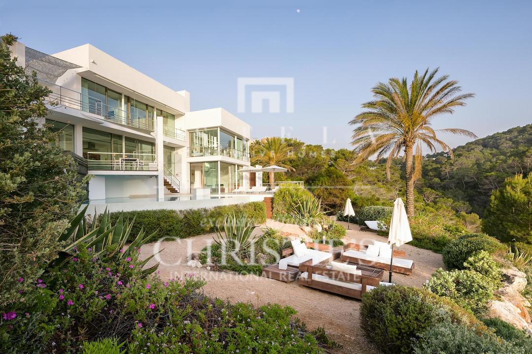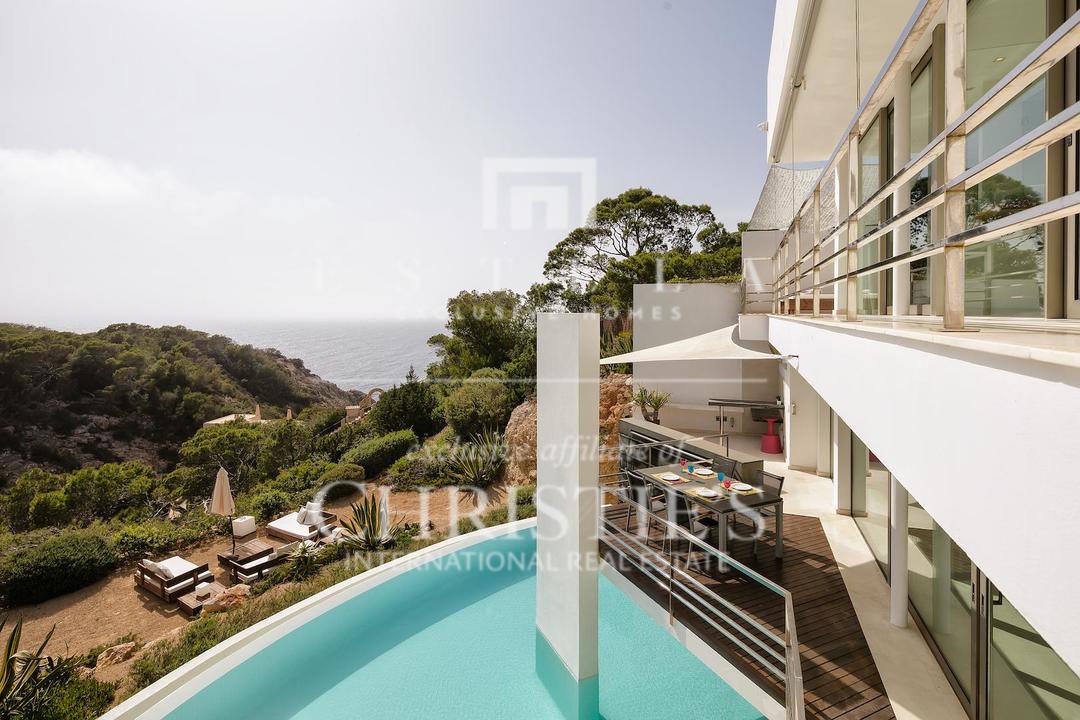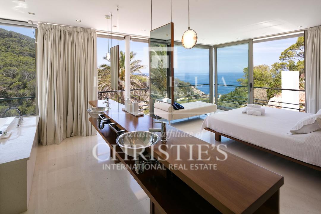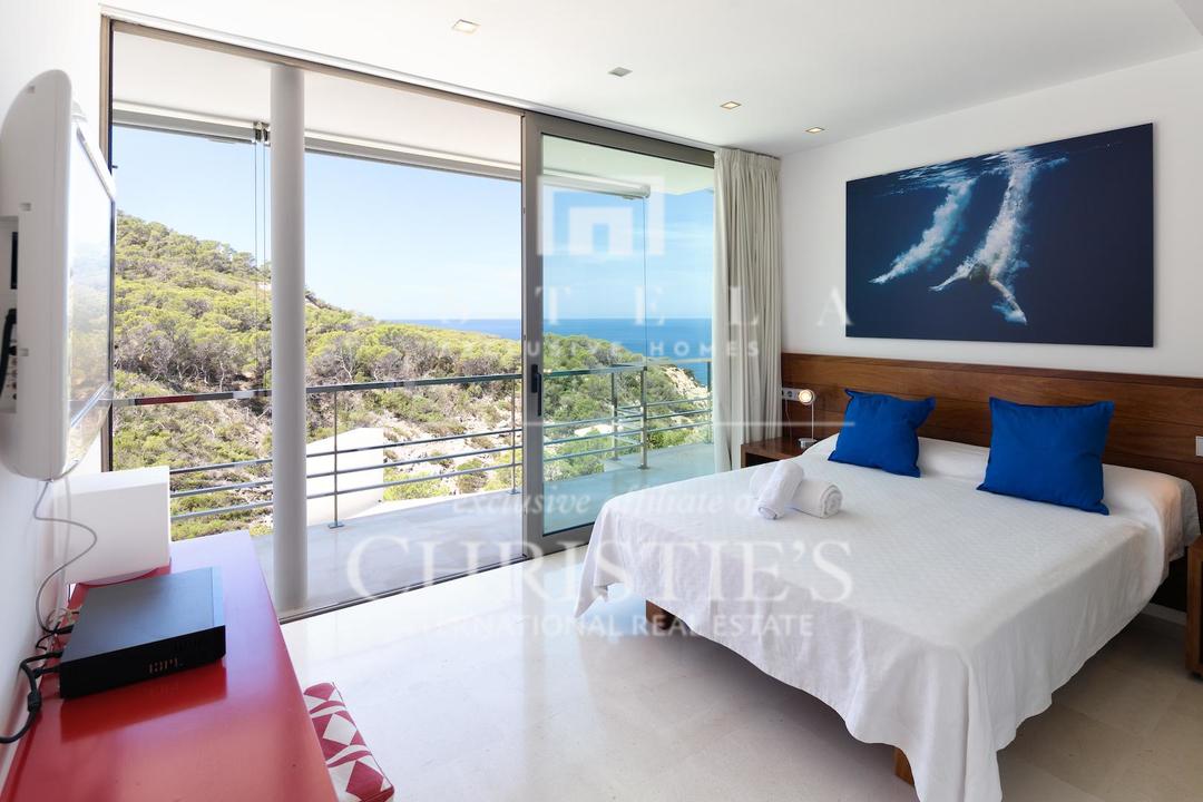 Ubicada en una de las zonas más privilegiadas de la costa oeste de Ibiza, esta espectacular villa contemporánea en Cala Vadella ofrece una oportunidad excepcional para adquirir una propiedad única frente al mar, con acceso directo al agua y licencia turística en vigor. Diseñada con una estética minimalista y líneas limpias, la vivienda combina elegancia, privacidad y confort en un entorno incomparable, ideal tanto como residencia privada de alto nivel como inversión con excelente rentabilidad. Su ubicación privilegiada permite disfrutar de absoluta tranquilidad, impresionantes vistas abiertas al mar y algunas de las puestas de sol más emblemáticas de la isla. Los espacios exteriores han sido concebidos para aprovechar al máximo el estilo de vida mediterráneo. Una amplia piscina se integra armoniosamente con la arquitectura de la villa, creando una atmósfera sofisticada perfecta para el descanso, el ocio y las reuniones al aire libre con el mar como telón de fondo. En el interior, la propiedad destaca por sus estancias amplias y luminosas. La cocina, totalmente equipada y de diseño moderno, conecta con la zona exterior de comedor, ideal para disfrutar de largas comidas y cenas al aire libre durante todo el año. La zona de descanso se encuentra en la planta superior, donde se distribuyen todos los dormitorios. La suite principal ofrece espectaculares vistas al mar, baño en suite, armarios empotrados y acceso directo a la terraza exterior, aportando una sensación de exclusividad y privacidad absoluta. La villa está equipada con aire acondicionado y sistema de alarma integral, ofreciendo todas las comodidades propias de una residencia de lujo en una de las ubicaciones más demandadas de Ibiza. Gracias a su licencia turística, esta propiedad representa además una excelente oportunidad de inversión, combinando prestigio, ubicación y un sólido potencial de alquiler vacacional en el mercado premium de la isla.