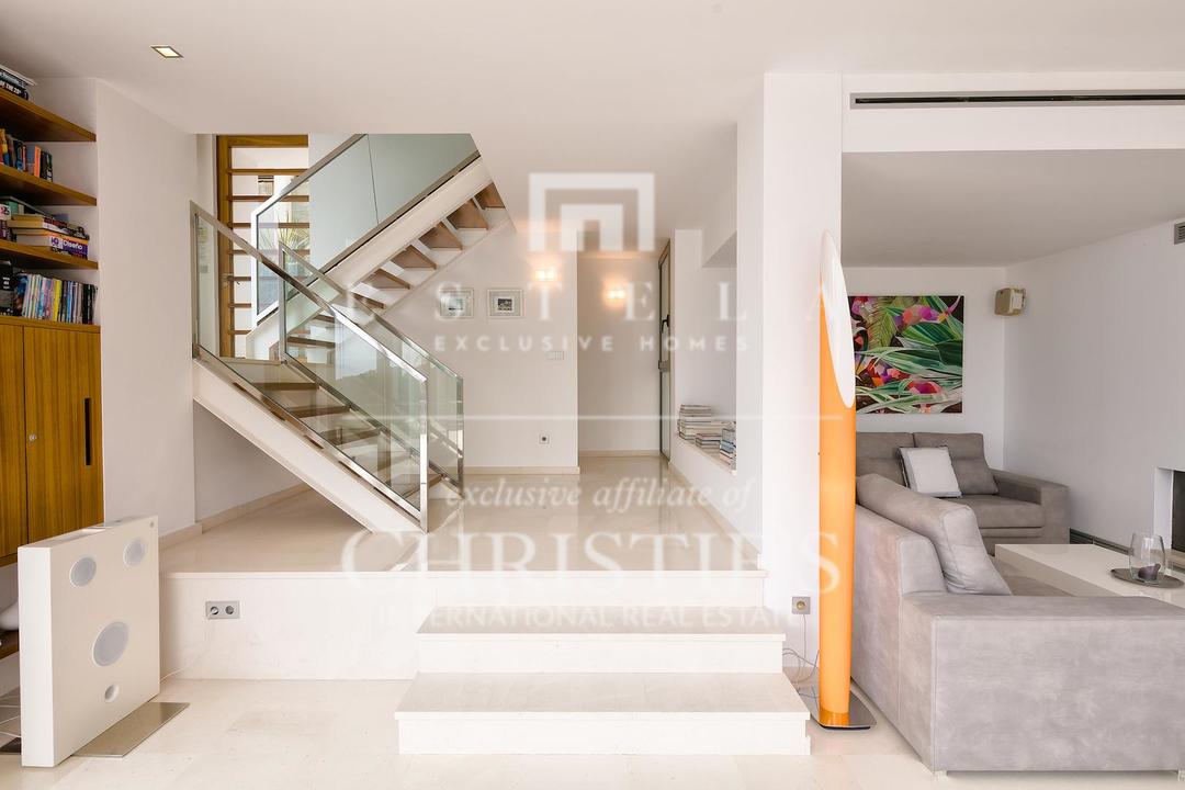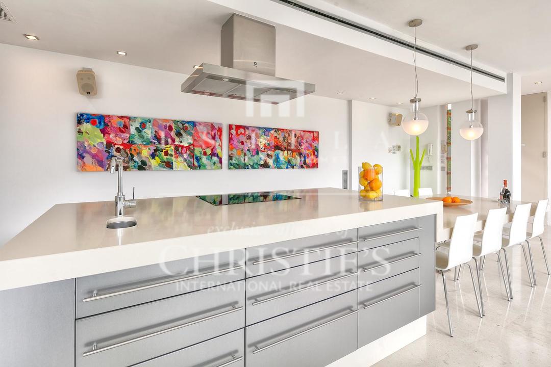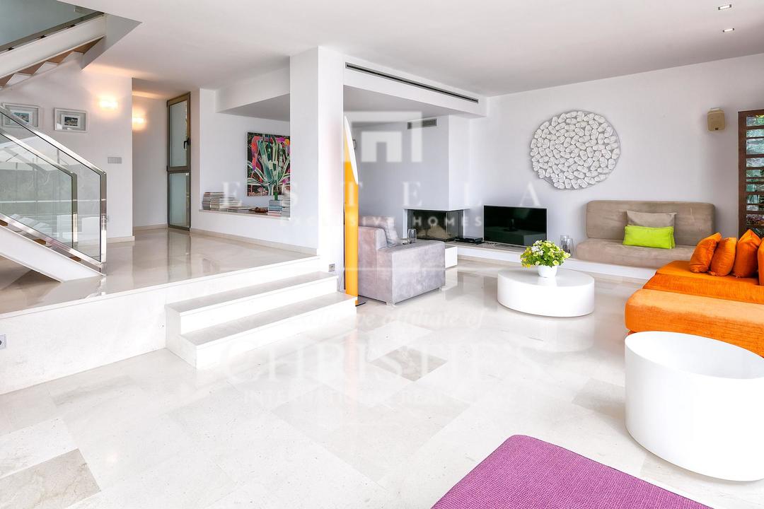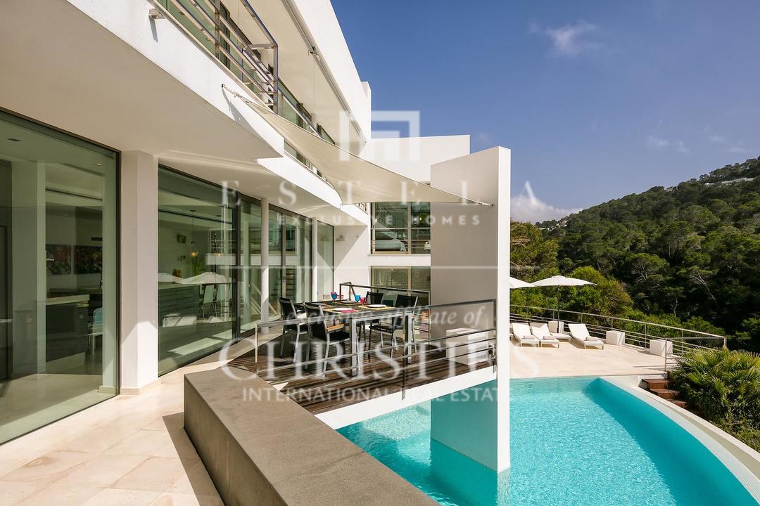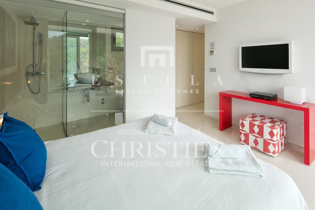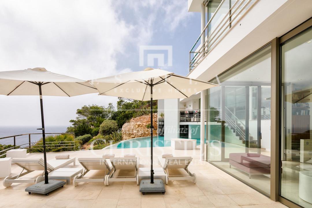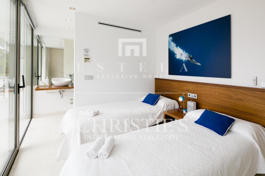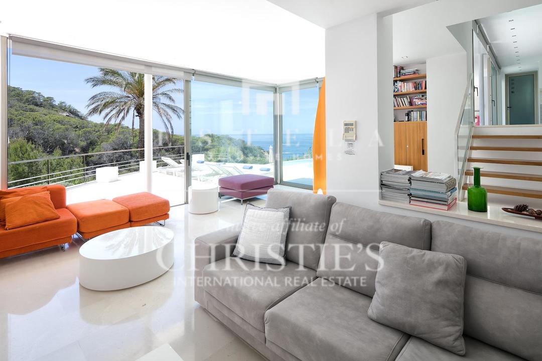 Ubicada en una de las zonas más privilegiadas de la costa oeste de Ibiza, esta espectacular villa contemporánea en Cala Vadella ofrece una oportunidad excepcional para adquirir una propiedad única frente al mar, con acceso directo al agua y licencia turística en vigor. Diseñada con una estética minimalista y líneas limpias, la vivienda combina elegancia, privacidad y confort en un entorno incomparable, ideal tanto como residencia privada de alto nivel como inversión con excelente rentabilidad. Su ubicación privilegiada permite disfrutar de absoluta tranquilidad, impresionantes vistas abiertas al mar y algunas de las puestas de sol más emblemáticas de la isla. Los espacios exteriores han sido concebidos para aprovechar al máximo el estilo de vida mediterráneo. Una amplia piscina se integra armoniosamente con la arquitectura de la villa, creando una atmósfera sofisticada perfecta para el descanso, el ocio y las reuniones al aire libre con el mar como telón de fondo. En el interior, la propiedad destaca por sus estancias amplias y luminosas. La cocina, totalmente equipada y de diseño moderno, conecta con la zona exterior de comedor, ideal para disfrutar de largas comidas y cenas al aire libre durante todo el año. La zona de descanso se encuentra en la planta superior, donde se distribuyen todos los dormitorios. La suite principal ofrece espectaculares vistas al mar, baño en suite, armarios empotrados y acceso directo a la terraza exterior, aportando una sensación de exclusividad y privacidad absoluta. La villa está equipada con aire acondicionado y sistema de alarma integral, ofreciendo todas las comodidades propias de una residencia de lujo en una de las ubicaciones más demandadas de Ibiza. Gracias a su licencia turística, esta propiedad representa además una excelente oportunidad de inversión, combinando prestigio, ubicación y un sólido potencial de alquiler vacacional en el mercado premium de la isla.