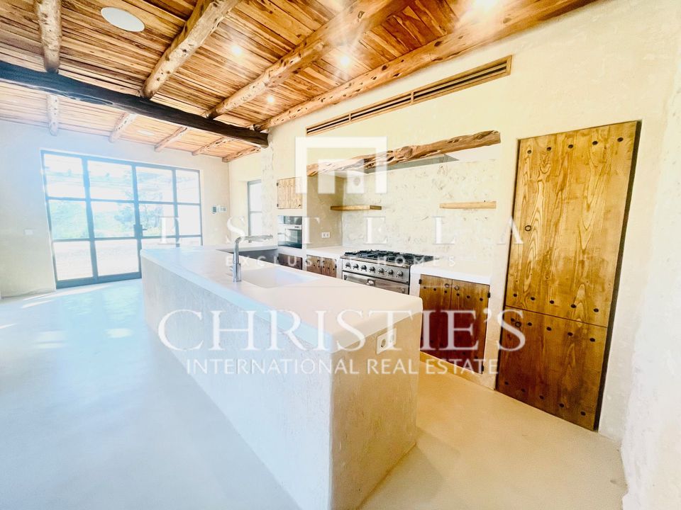 Villa Mercat est une ancienne ferme située au cœur d’Ibiza, appartenant depuis des générations à une famille locale ibicienne. En 2025, le studio Blakstad l’emmène vers une nouvelle étape : restaurer son architecture d’origine, agrandir les espaces lumineux et fusionner l’héritage traditionnel avec un style de vie contemporain et luxueux. Orientée au sud-ouest, la propriété s’étend sur un grand terrain entouré d’oliviers et d’agrumes, avec des vues dégagées sur la campagne depuis le rez-de-chaussée et, à l’étage, des vues exceptionnelles sur Dalt Vila et la mer. Imaginez des matinées à marcher jusqu’à Santa Gertrudis pour prendre un café, des après-midis à s’occuper du jardin parmi les oliviers méditerranéens, et des soirées à cuisiner en famille avant de se réunir sur la terrasse sous les étoiles. Ici, le VTT et la randonnée sont des rituels du week-end, et les hivers se savourent avec la même intensité que les étés. C’est une maison où la nature, la famille et le rythme paisible sont aussi importants que l’architecture et le design. À l’intérieur, l’ancien et le moderne cohabitent avec intention. Les murs de pierre d’origine et les poutres traditionnelles en sabine sont conservés, tandis que les fenêtres et portes sont agrandies pour maximiser l’entrée de lumière. Les espaces circulent de manière organique : grands salons et salles à manger, cuisine pensée pour cuisiner et partager, et plusieurs espaces de réception. Les chambres sont lumineuses et privées. À l’étage, une pièce remarquable offre une vue directe sur Dalt Vila et des aperçus de la mer — quelque chose d’exceptionnel pour une maison située dans cette zone centrale. Le terrain est vaste et magnifique : oliveraies matures, arbres fruitiers, terrasses naturelles et un environnement qui transmet histoire, sérénité et authenticité.