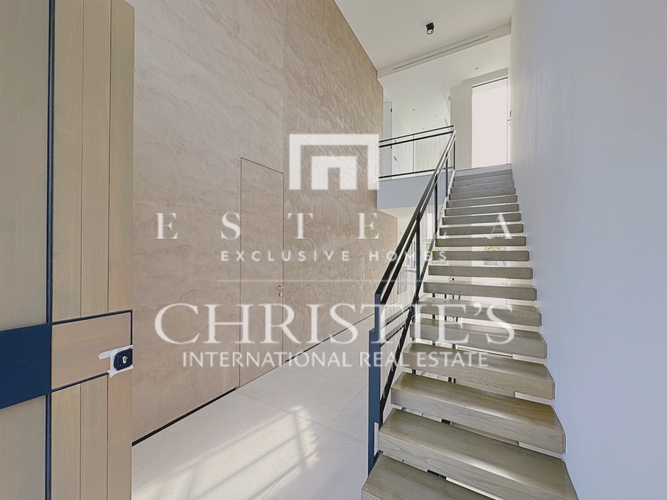 Villa moderne exclusive construite sur la côte ouest d'Ibiza, considérée comme l'une des plus belles de l'île pour ses magnifiques criques et ses vues spectaculaires sur le coucher du soleil. Elle présente une belle conception architecturale aux lignes simples qui, créée par un architecte de renom, s'inspire de la tradition méditerranéenne de l'île, recréée par l'utilisation de la pierre et des matériaux locaux. La villa présente un design ouvert et lumineux avec une entrée impressionnante, de hauts plafonds et une combinaison intéressante de pierres naturelles, de cadres de fenêtres et de verre suggérant un espace spacieux et ouvert. Le rez-de-chaussée se compose d'un vaste salon ouvert avec cheminée et accès aux grandes terrasses et à l'impressionnante piscine de 21 mètres de long. La cuisine offre un espace de cuisson fermé et une cuisine ouverte sur le salon. La chambre principale, avec salle de bains en suite et dressing, bénéficie d'une terrasse privée avec jacuzzi. Au premier étage se trouvent 3 autres chambres doubles avec salle de bains en suite et une terrasse d'accès commun avec des vues agréables. De plus, des escaliers mènent à la terrasse sur le toit, qui est utilisée comme espace de détente. Ces deux terrasses offrent une vue magnifique et privilégiée sur la mer au coucher du soleil. Enfin, un vaste sous-sol abrite un grand garage et des locaux techniques. 4 Estrelicia forme un ensemble harmonieux et équilibré avec son environnement naturel qui favorise la création dans chacune des villas d'un effet de flou entre l'intérieur et l'extérieur, amenant le ciel, l'eau et les jardins à l'intérieur. Toutes les pièces donnent sur les jardins méditerranéens ou sur les piscines spectaculaires, ce qui confère aux villas un rythme tranquille et gratifiant.