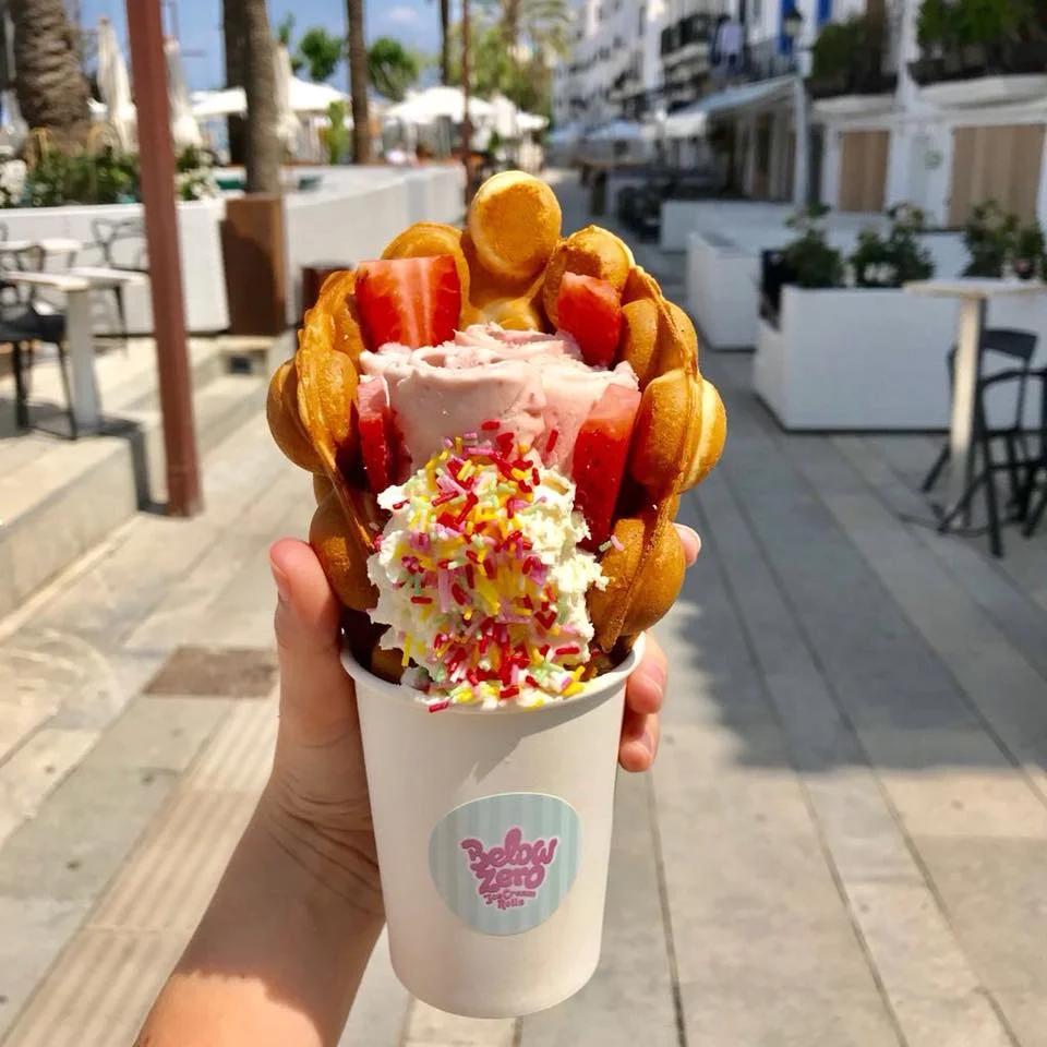 New to Ibiza this year, and conveniently placed in busy Carrer D’Enmig, this innovative ice cream rolls bar has one of the trendiest new deserts on the block. Pick any filling you fancy, maybe Kinda Bueno or peanut butter and banana, and they smash it together with a fresh homemade mix, roll it into delightful tubes, and serve it in a tub, a taco or even a bubble waffle, and vegan options are available. Who wants ice cream in a cone anymore?