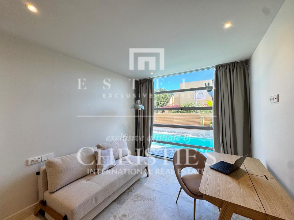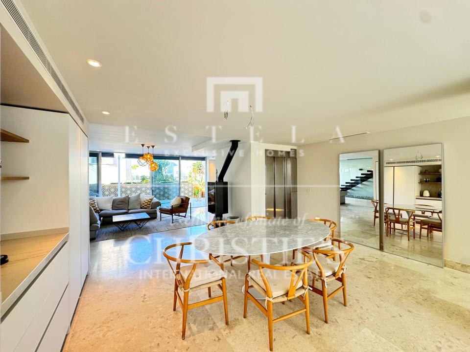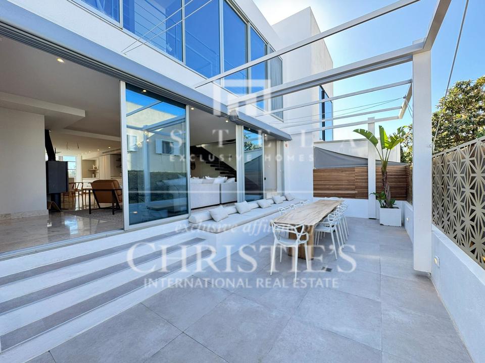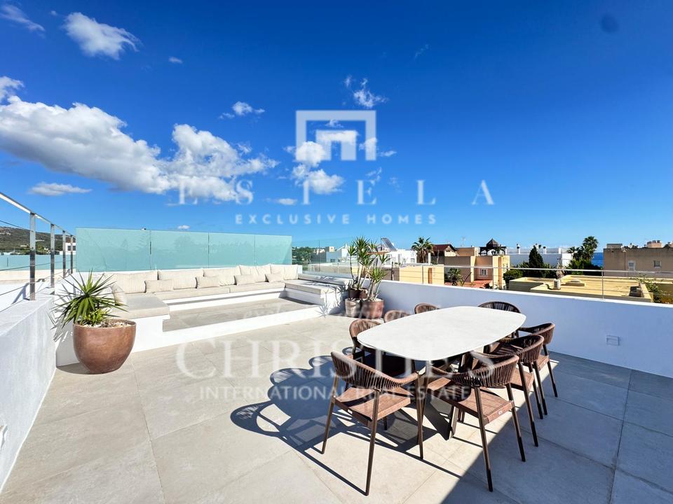 Questa eccezionale villetta a schiera a Illa Plana è stata completamente ristrutturata secondo i più alti standard, dando vita a una residenza contemporanea che unisce lusso, comfort e un design raffinato in una delle zone più ambite di Ibiza. Situata in un’area residenziale tranquilla, a pochi passi dalla spiaggia di Talamanca, da Marina Botafoch e dalla città di Ibiza, e a meno di quindici minuti di auto dall’aeroporto, offre un connubio perfetto tra comodità e privacy. All’interno, la casa vanta 232 m² di spazi finemente progettati distribuiti su due livelli. L’atmosfera è luminosa, aperta e accogliente, con un elegante layout open-space che collega la cucina di design completamente attrezzata all’ampia zona living e pranzo. Ogni dettaglio è stato selezionato con cura per creare un ambiente funzionale e sofisticato, ideale sia per la vita quotidiana sia per ricevere ospiti. La proprietà dispone di quattro ampie camere da letto, ognuna con bagno privato en suite, garantendo confort e privacy a familiari e visitatori. Un ulteriore bagno per gli ospiti aggiunge un ulteriore livello di praticità. Gli spazi esterni sono uno dei punti di forza della casa. Con 155 m² di terrazze distribuite su quattro livelli, non manca lo spazio per godere del meraviglioso clima dell’isola tutto l’anno. La piscina privata offre un’oasi rinfrescante durante i mesi più caldi, mentre l’imponente terrazza sul tetto eleva ulteriormente l’esperienza abitativa. Dotata di cucina esterna con barbecue, area lounge, grande tavolo da pranzo e lettini prendisole, rappresenta un luogo straordinario per cenare, rilassarsi o semplicemente ammirare le viste panoramiche sul mare, sulle colline, sul porto e sulla silhouette di Dalt Vila. Completano la proprietà ulteriori comfort di alto livello, tra cui un parcheggio sotterraneo per due auto, un ascensore privato che collega tutti i piani, doppi vetri, termosifoni a parete, camino, aria condizionata caldo/freddo e connessione internet ad alta velocità. Questa proprietà rappresenta un’opportunità unica per vivere il lusso moderno con viste impareggiabili e una posizione straordinaria, combinando eleganza, ampi spazi e vicinanza ai luoghi più esclusivi dell’isola in una casa elegante e pronta per essere abitata.
