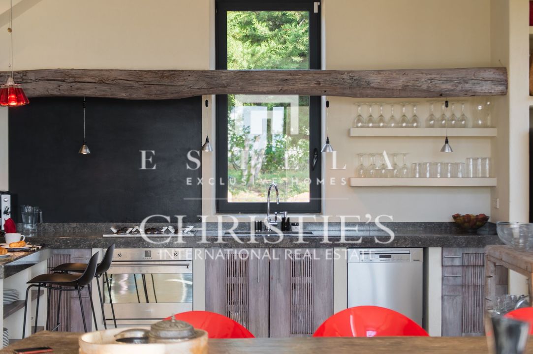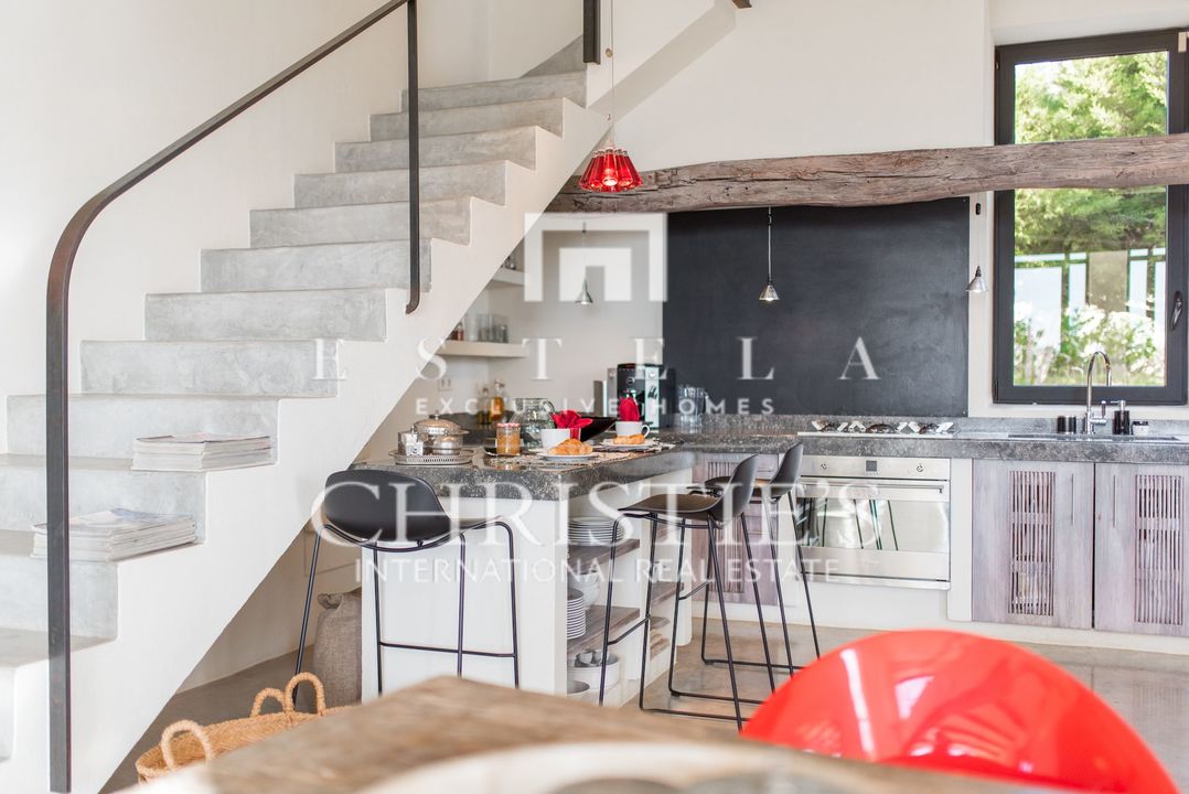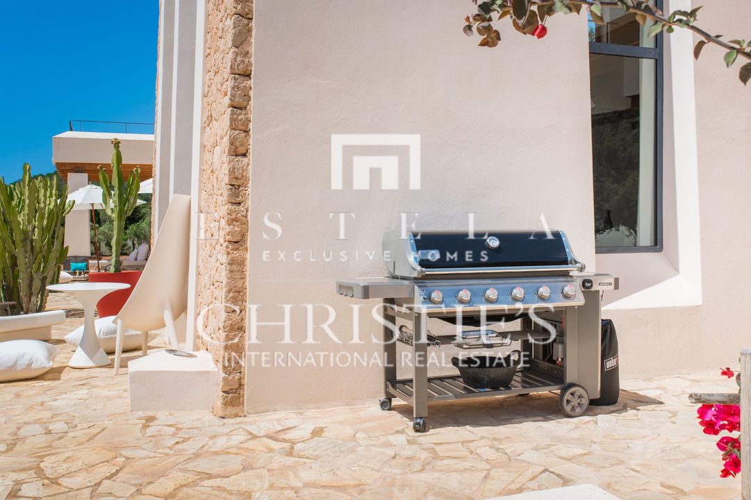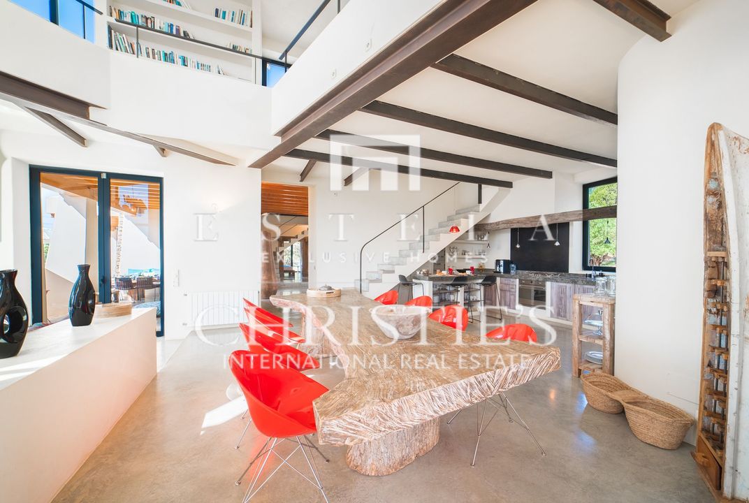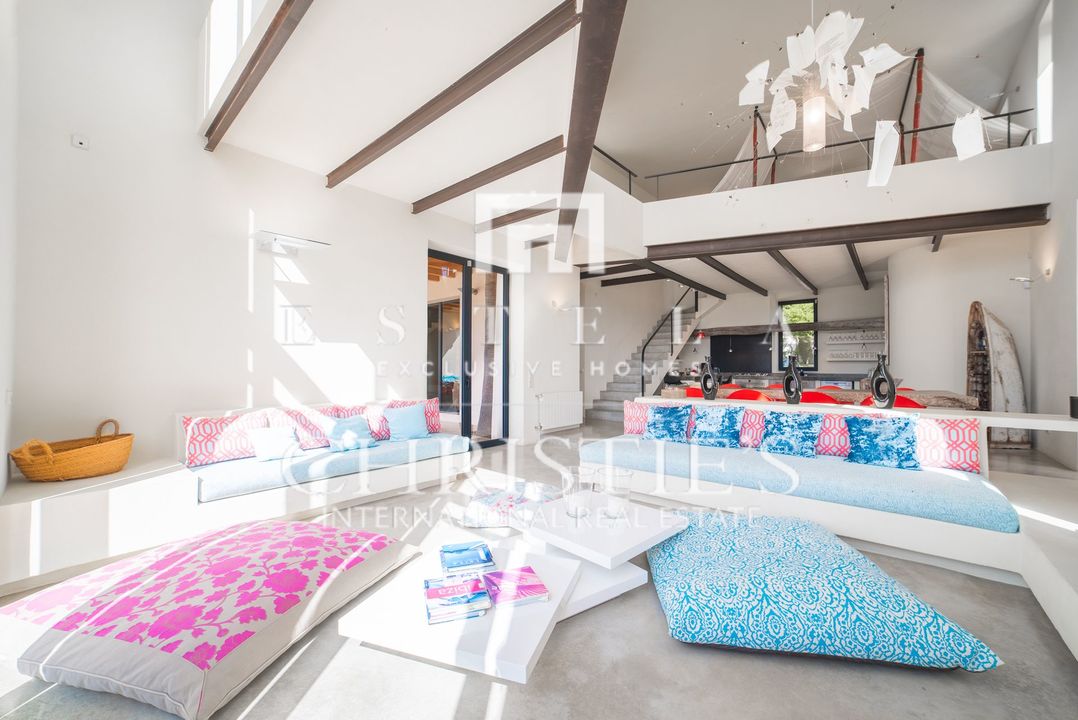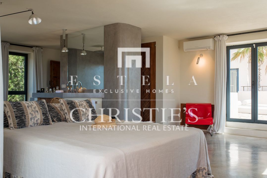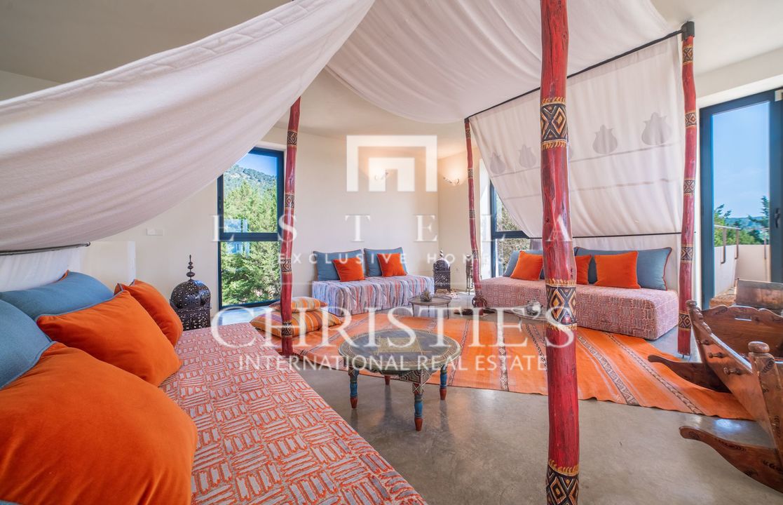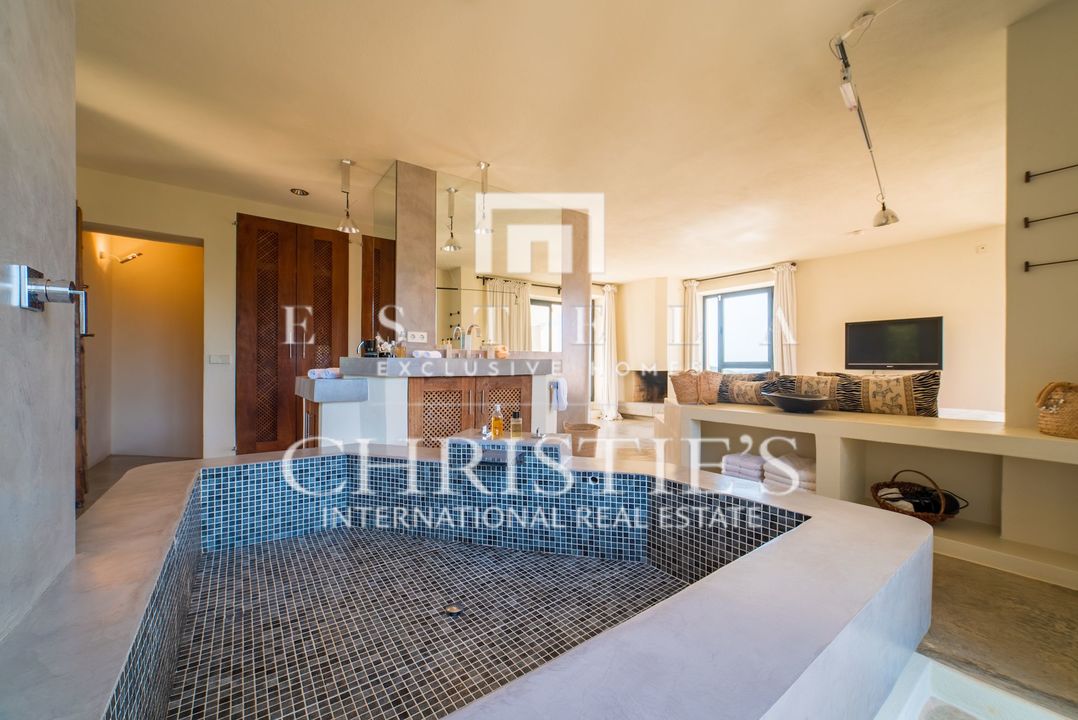 Villa Bakea è una villa affascinante dove tranquillità, spazio e carattere si fondono con naturale eleganza. La proprietà emana un’atmosfera calda e rilassata, valorizzata da soffitti alti, diverse accoglienti zone living e interni che uniscono design moderno e influenze provenienti da luoghi come il Marocco. In tutta la casa si trovano raffinati pezzi di design di marchi come Philippe Starck, Gandia Blasco e Missoni, che conferiscono alla villa una personalità distintiva. La villa sorge su un ampio terreno con grandi spazi esterni e un vasto giardino erboso, rendendola particolarmente adatta alle famiglie con bambini. La posizione è ideale: vicino al pittoresco villaggio di Es Cubells e alla rinomata spiaggia di Es Torrent con il celebre ristorante Ses Boques. Luoghi iconici come Es Vedrà e l’area naturale nascosta di Atlantis sono anch’essi a breve distanza. All’interno, la villa offre una zona giorno open space dove soggiorno, cucina e bar si integrano perfettamente. Il bar, completo di sgabelli, crea uno spazio conviviale perfetto per ritrovarsi. Sia all’interno che all’esterno sono presenti ampi tavoli da pranzo che possono ospitare comodamente fino a otto persone. Il soggiorno dispone di comodi divani, TV con lettore DVD e un impianto audio di alta qualità, con accesso diretto alla terrazza. La casa gode di splendide viste sul Mar Mediterraneo fino a Formentera. Villa Bakea offre tutto il necessario per un soggiorno rilassante fino a otto ospiti. La villa è spaziosa e completamente climatizzata. All’esterno troverete una splendida piscina di 5 x 15 metri, diverse zone lounge e solarium, varie terrazze, un ampio prato e numerosi posti auto. La proprietà dispone di quattro camere da letto in totale, tre delle quali disponibili per affitti turistici. Queste camere sono dotate di letto matrimoniale e ciascuna dispone di bagno privato en suite, aria condizionata e terrazza privata. La quarta camera da letto si trova separata dalla casa principale e presenta un caratteristico bagno esterno con doccia. Questa stanza è destinata a uso non turistico.