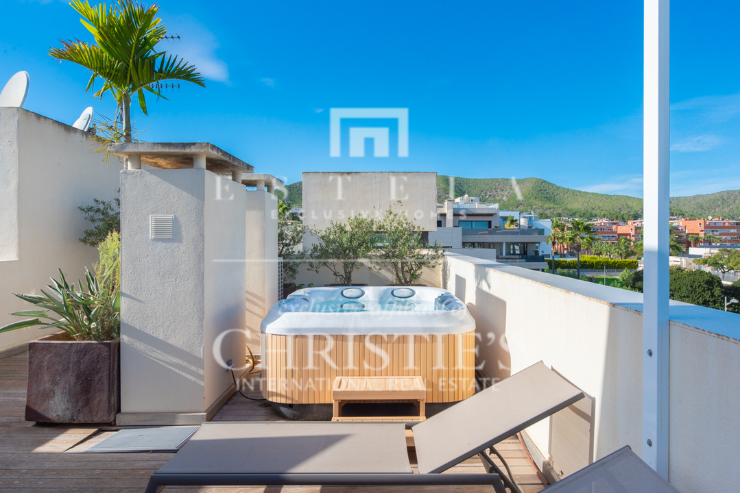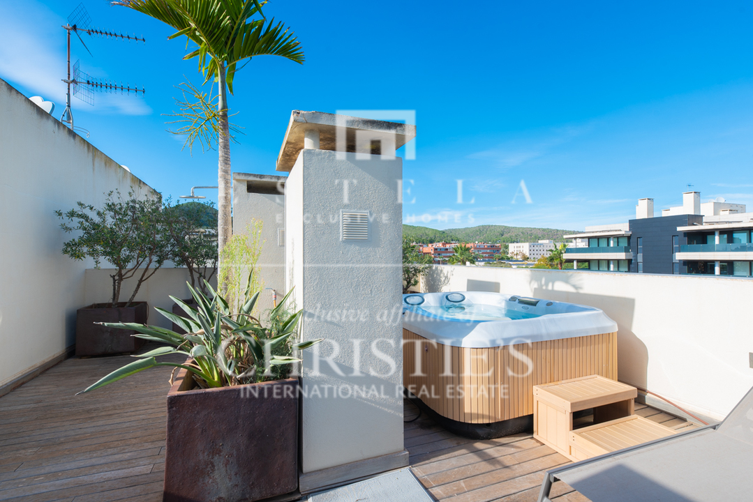 L'attico Enrow è un elegante e moderno attico con 2 camere da letto situato in una ricercata comunità di Can Misses, Ibiza. Questa elegante residenza combina un sofisticato stile di vita urbano con ampi spazi esterni e servizi comuni di alto livello, tra cui un servizio di portineria giornaliero per una maggiore sicurezza e comodità. ACCESSO, INGRESSO E PARCHEGGIO La comunità privata e recintata, rinomata per la sua eccellente reputazione sull'isola, offre un accesso sicuro attraverso un cancello. All'arrivo si percepisce immediatamente un senso di esclusività e lusso, con un comodo parcheggio sotterraneo caratterizzato da un soffitto alto 4 metri. Adiacente al parcheggio, si trova anche un ripostiglio privato di 10 m². DISTRIBUZIONE L'appartamento di 116 m² è stato progettato con cura e vanta un'ampia e luminosa zona giorno con soffitti alti 2,6 metri e porte scorrevoli a tutta altezza che si aprono su un'ampia terrazza avvolgente. L'invitante soggiorno è dotato di una Smart TV e di un sistema audio Sonos, che confluiscono senza sforzo nella cucina aperta e nella zona pranzo. La moderna cucina a pianta aperta è completamente attrezzata con elettrodomestici Siemens, tra cui un forno a vapore e un sistema di filtraggio dell'acqua a osmosi. Inoltre, è presente una lavanderia separata con lavatrice e asciugatrice. La camera da letto principale dispone di un bagno privato e di un accesso privato alla terrazza esterna di 23 m2 , mentre una seconda camera da letto vicina con due letti singoli è servita da un bagno in comune, garantendo così privacy e comfort. ESTERNO L'attico offre ampi spazi esterni, tra cui una spaziosa terrazza avvolgente dotata di ventilatori e luci a soffitto, arredata con un tavolo da pranzo per sei persone e un'accogliente zona chill-out, perfetta per le riunioni di famiglia e amici. Inoltre, una terrazza privata sul tetto di 92 m² con un ponte in legno di teak offre un'area solarium completa di vasca idromassaggio, un luogo ideale per rilassarsi. Il tetto è ornato da ulivi, piante tropicali, una doccia esterna, illuminazione ambientale e un grande toldo retrattile per un maggiore comfort nelle giornate di sole. Le aree comuni sono caratterizzate da giardini lussureggianti e ben curati, con piante e alberi ben coltivati che conferiscono un'atmosfera molto rilassata, e da tre piscine a disposizione dei residenti: una grande piscina di 15 x 8 metri, una piscina per bambini e una piscina di 25 metri con jetstream. ATTREZZATURE TECNICHE La proprietà è dotata di acqua ed elettricità di rete, di moderni elettrodomestici da cucina, di un sistema di allarme e di un impianto di climatizzazione centralizzato recentemente aggiornato che offre sia riscaldamento che raffreddamento. Un sistema di riscaldamento elettrico Rointe fornisce ulteriore calore, assicurando il comfort durante tutto l'anno. Le camere da letto sono dotate di armadi a muro e tende oscuranti per garantire la privacy e un sonno riposante. POSIZIONE Situato a soli dieci minuti a piedi dalla città di Ibiza, a venti minuti da Dalt Vila e a dieci minuti di auto dalle famose spiagge di Platja D'en Bossa e Talamanca, questo attico è perfettamente situato per esplorare tutto ciò che Ibiza ha da offrire. Il quartiere offre anche numerosi centri sportivi e un facile accesso a una varietà di servizi, migliorando sia la convenienza che lo stile di vita. IDEALE PER Questa proprietà è una scelta eccellente per una residenza primaria, in quanto offre un comodo accesso ai servizi essenziali per una vita quotidiana confortevole. È anche una casa ideale per le vacanze, essendo un appartamento chiavi in mano pronto per l'uso immediato, con servizi simili a quelli di un hotel e la vicinanza alle attrazioni più rappresentative dell'isola. Questa proprietà offre il perfetto connubio tra la vivace vita cittadina e il rifugio tranquillo.