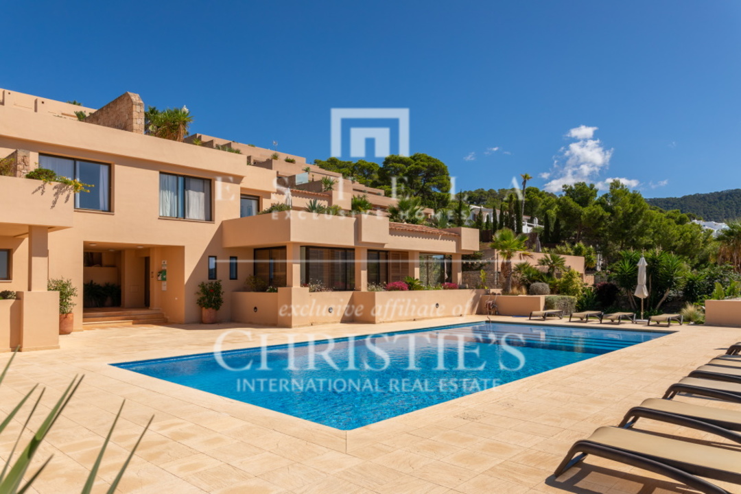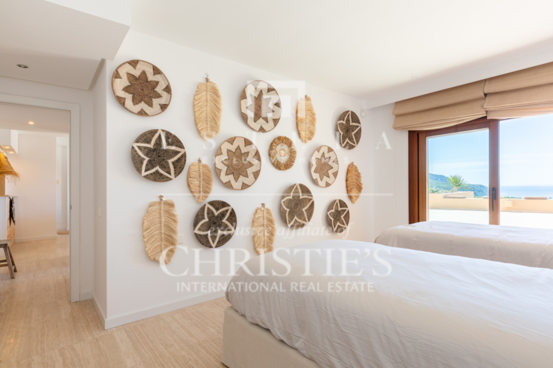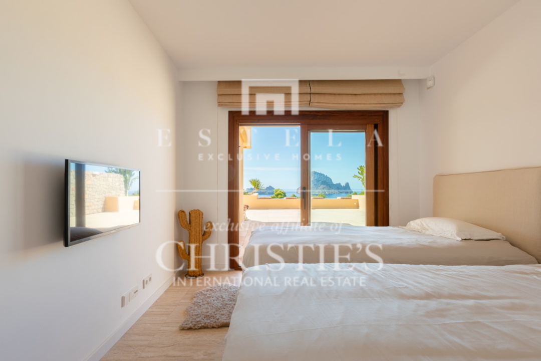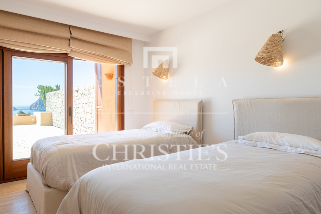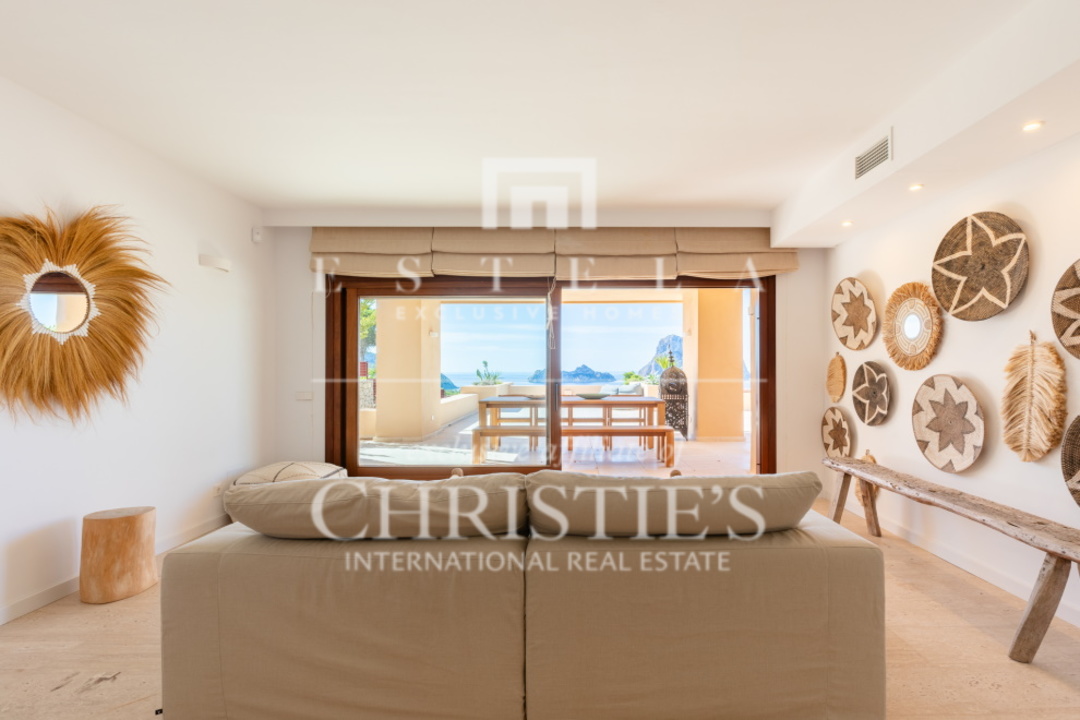 Questo splendido appartamento con 2 camere da letto si trova nella tranquilla Cala Carbo. Questa zona è nota per la sua atmosfera tranquilla, circondata dalla natura incontaminata di Ibiza. L'appartamento si trova al piano terra e vanta una spaziosa terrazza, sia coperta che aperta, da cui si può ammirare la vista mozzafiato dell'iconica Es Vedra, uno dei luoghi più magici dell'isola. Cala Carbo è uno dei segreti meglio custoditi di Ibiza. Questa incantevole spiaggia è incastonata tra colline e pini, creando un ambiente calmo e rilassato. È il luogo perfetto per chi vuole sfuggire alla folla e godersi una spiaggia appartata con acque cristalline. Nelle vicinanze si trovano alcuni accoglienti ristoranti sulla spiaggia dove potrete gustare la cucina locale ammirando il mare azzurro. Dalla terrazza dell'appartamento, di circa 150 m2, si gode di una splendida vista su Es Vedra, spesso considerata uno dei luoghi più mistici e suggestivi di Ibiza. Questa roccia alta 400 metri, situata al largo della costa di Cala d'Hort, è circondata da leggende di forze magnetiche e racconti mitologici. Guardare il tramonto su Es Vedra è davvero magico e crea un'atmosfera difficile da descrivere a parole. Questo appartamento fa parte di un piccolo complesso che comprende una piscina comune, perfetta per rinfrescarsi durante le calde giornate estive. Un posto auto è comodamente situato proprio di fronte all'appartamento, per aumentarne la comodità. All'interno, l'appartamento è dotato di aria condizionata con possibilità di riscaldamento e raffreddamento, per garantire un clima piacevole tutto l'anno. Entrambe le camere da letto hanno accesso diretto alla spaziosa terrazza, che permette di godere della splendida vista e dell'aria fresca in qualsiasi momento della giornata.