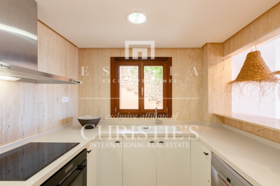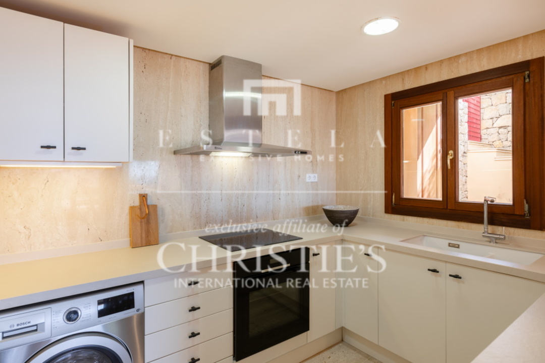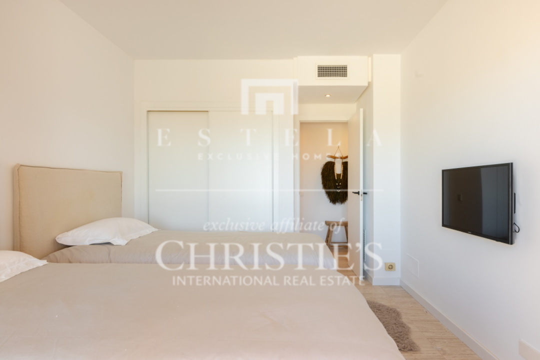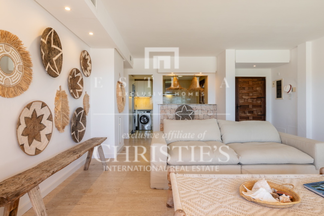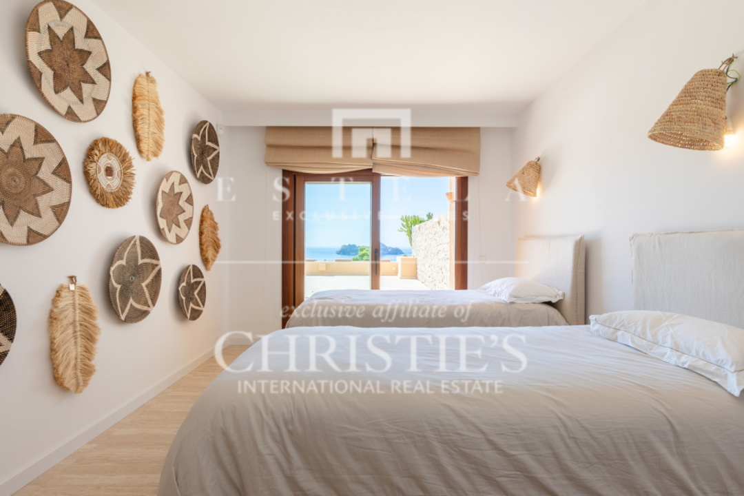 Questo splendido appartamento con 2 camere da letto si trova nella tranquilla Cala Carbo. Questa zona è nota per la sua atmosfera tranquilla, circondata dalla natura incontaminata di Ibiza. L'appartamento si trova al piano terra e vanta una spaziosa terrazza, sia coperta che aperta, da cui si può ammirare la vista mozzafiato dell'iconica Es Vedra, uno dei luoghi più magici dell'isola. Cala Carbo è uno dei segreti meglio custoditi di Ibiza. Questa incantevole spiaggia è incastonata tra colline e pini, creando un ambiente calmo e rilassato. È il luogo perfetto per chi vuole sfuggire alla folla e godersi una spiaggia appartata con acque cristalline. Nelle vicinanze si trovano alcuni accoglienti ristoranti sulla spiaggia dove potrete gustare la cucina locale ammirando il mare azzurro. Dalla terrazza dell'appartamento, di circa 150 m2, si gode di una splendida vista su Es Vedra, spesso considerata uno dei luoghi più mistici e suggestivi di Ibiza. Questa roccia alta 400 metri, situata al largo della costa di Cala d'Hort, è circondata da leggende di forze magnetiche e racconti mitologici. Guardare il tramonto su Es Vedra è davvero magico e crea un'atmosfera difficile da descrivere a parole. Questo appartamento fa parte di un piccolo complesso che comprende una piscina comune, perfetta per rinfrescarsi durante le calde giornate estive. Un posto auto è comodamente situato proprio di fronte all'appartamento, per aumentarne la comodità. All'interno, l'appartamento è dotato di aria condizionata con possibilità di riscaldamento e raffreddamento, per garantire un clima piacevole tutto l'anno. Entrambe le camere da letto hanno accesso diretto alla spaziosa terrazza, che permette di godere della splendida vista e dell'aria fresca in qualsiasi momento della giornata.