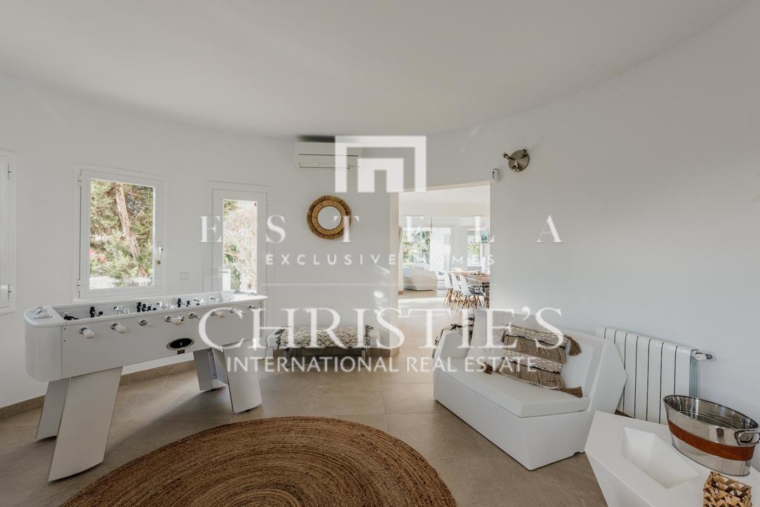 Villa moderna a soli 10 minuti dalla città di Ibiza: situata nella tranquilla zona di Sa Carroca, in cima a una montagna Questa splendida villa, ristrutturata nel 2019, vanta un design contemporaneo realizzato da un architetto, utilizzando materiali moderni e di alta qualità. Con uno spazio generoso di 350 m2, la villa offre 5 spaziose suite e 5 bagni. Due suite si trovano al primo piano, mentre le altre tre si trovano al secondo piano. Ogni piano è caratterizzato da ampi soggiorni e la cucina open-space è un vero punto di forza. Grazie al controllo del clima in tutta la casa, alle finestre antisfondamento e alle telecamere di sicurezza, il comfort e la sicurezza sono assicurati. La villa è circondata da un bellissimo giardino di 1200 m2 e la ciliegina sulla torta è la piscina mozzafiato, perfetta per il relax e il divertimento.