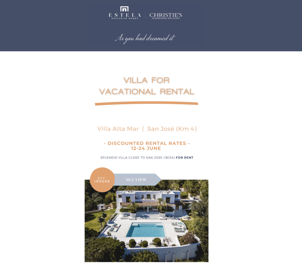 #IbizaRentals #LuxuryLiving #SeaViewVilla #EstelaExclusiveHomes #whereluxurylives #cire #ChristiesRealEstate #ChristiesInternationalRealEstate