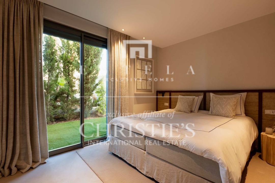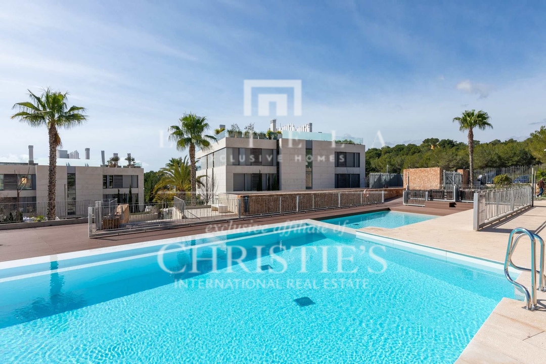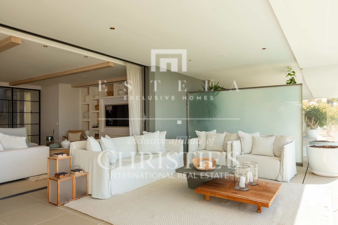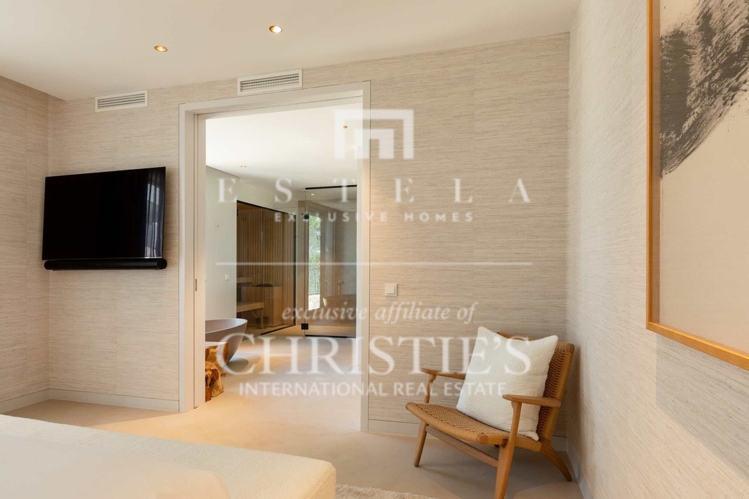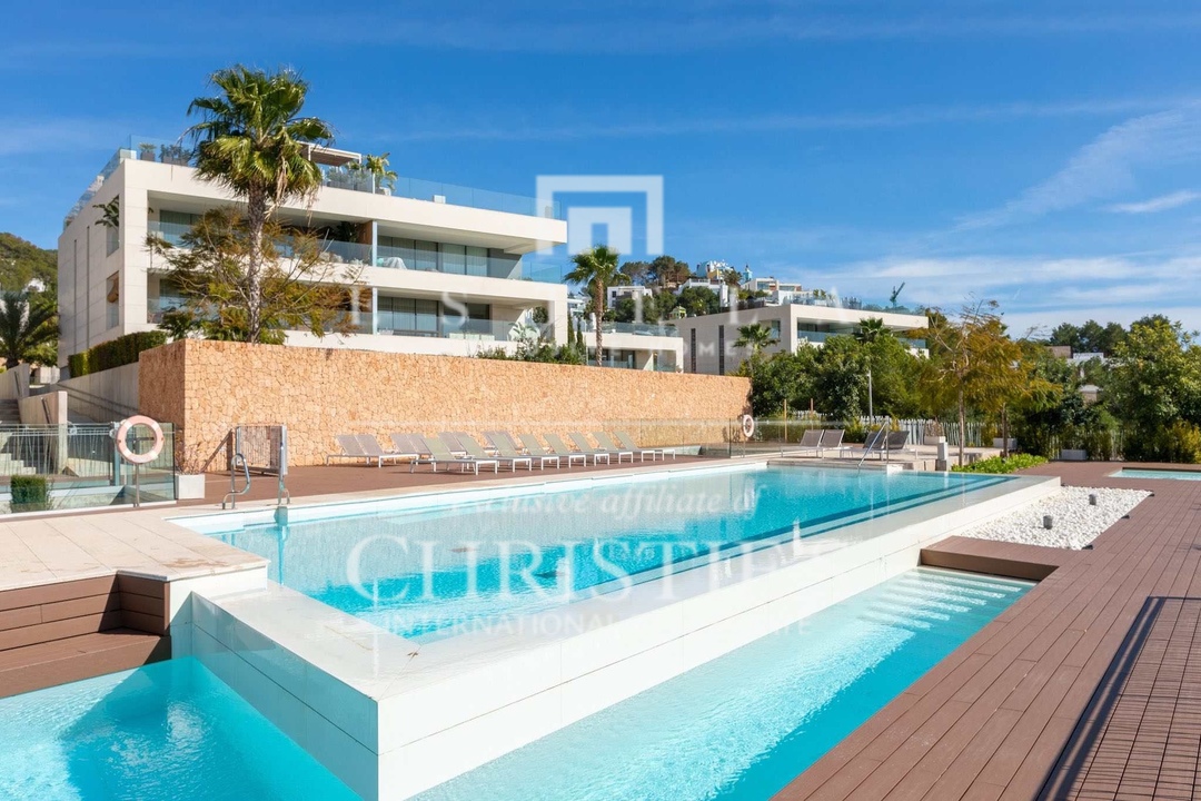 This unique merged double apartment (ground floor + penthouse) is now available in the sought-after White Angel Talamanca complex. Offering the space and privacy of a villa, combined with the ease and low maintenance of a luxury apartment, this home is an unparalleled find. Designed and finished by a renowned Dutch interior architect, the layout is flawlessly optimized, and the materials and finishes are of the highest standard, all in a stylish Ibiza ambiance. Ground Floor – Luxurious Guest Apartment with Private Garden & Pool - Spacious living area with an elegant open kitchen, fully equipped with top-tier appliances. - Three luxurious bedrooms, each with an elegant en-suite bathroom. - High-quality built-in wardrobes in all bedrooms. - Separate guest toilet and pantry with washer and dryer. - Direct access from the living room and master bedroom to the private garden of 249 m² , featuring a large covered terrace and private pool. First Floor – Master Suite & Panoramic Views - Expansive living area, spanning the full width of the apartment. - High-end open kitchen, fitted with premium appliances. - Large sliding doors open onto a spacious terrace, offering stunning views over Talamanca Bay and Dalt Vila. - Exclusive master suite with a luxurious en-suite bathroom, featuring a freestanding bathtub, oversized walk-in shower, and full-sized sauna. - Private dressing room with extensive built-in wardrobes. This room could also be converted to a fifth bedroom if needed. - Additional guest toilet. The ground floor can be fully closed off, allowing it to function as a completely self-contained guest apartment, ensuring maximum privacy for the owner on the first floor. Rooftop Terrace – Ultimate Luxury with a Second Private Pool. One of the most impressive features of this home is the sprawling 156 m² rooftop terrace, complete with a second private pool. This spectacular space offers: - Complete privacy, with ample lounge and sunbathing areas. - A stunning infinity pool as the focal point. - Breathtaking panoramic views of the sea and historic Dalt Vila. - Southwest orientation, ensuring maximum sunlight throughout the day.