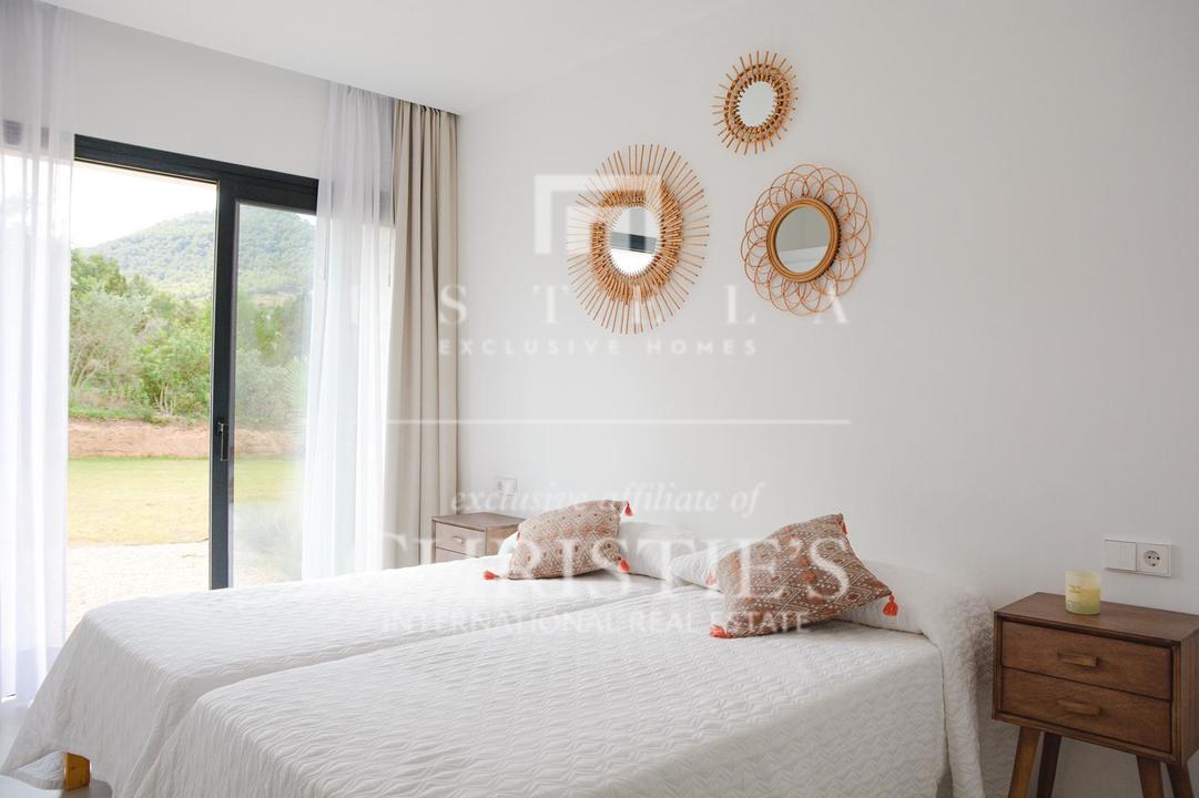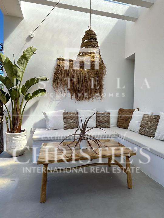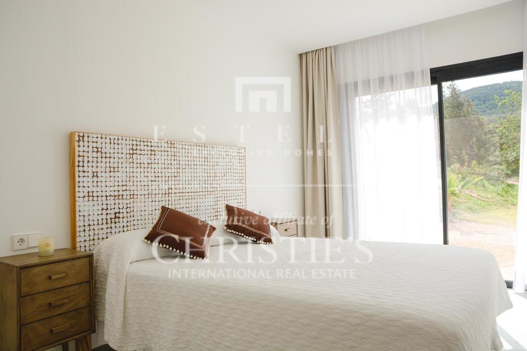 Located in a privileged setting near the village of Sant Josep and facing south, Villa Yanira combines contemporary Ibizan architecture, natural light, and a direct connection with its surroundings. The house features three bedrooms and three bathrooms, two of them en suite, and is designed with aesthetic and functional coherence, ideal for long stays and comfortable everyday living. The spacious living room, with a large sofa bed, flows seamlessly into an open-plan kitchen and a dining area designed both for sharing moments and enjoying peace and quiet. The porch and the 14-metre swimming pool, with open views of Sa Talaia, offer an ideal outdoor environment with privacy and tranquillity. The villa is conceived as a carefully curated space, a simple luxury where every element contributes to comfort, harmony, and practical living. It features air conditioning in all rooms, a solar water heating system, fibre optic internet, an alarm system, and a fully fenced perimeter. The approach is direct, personal, and flexible, ensuring a smooth stay throughout the summer season. Garden, pool, and waste maintenance included. Villa Yanira is a home cared for with intention: a place to live well in Ibiza, surrounded by calm, light, and coherence.