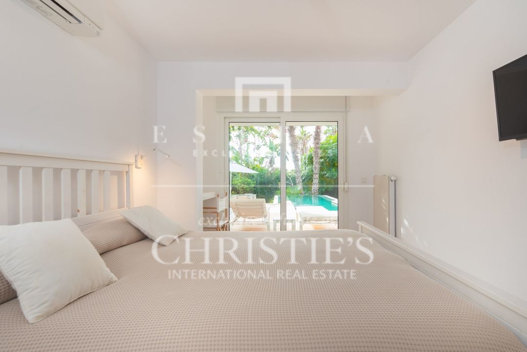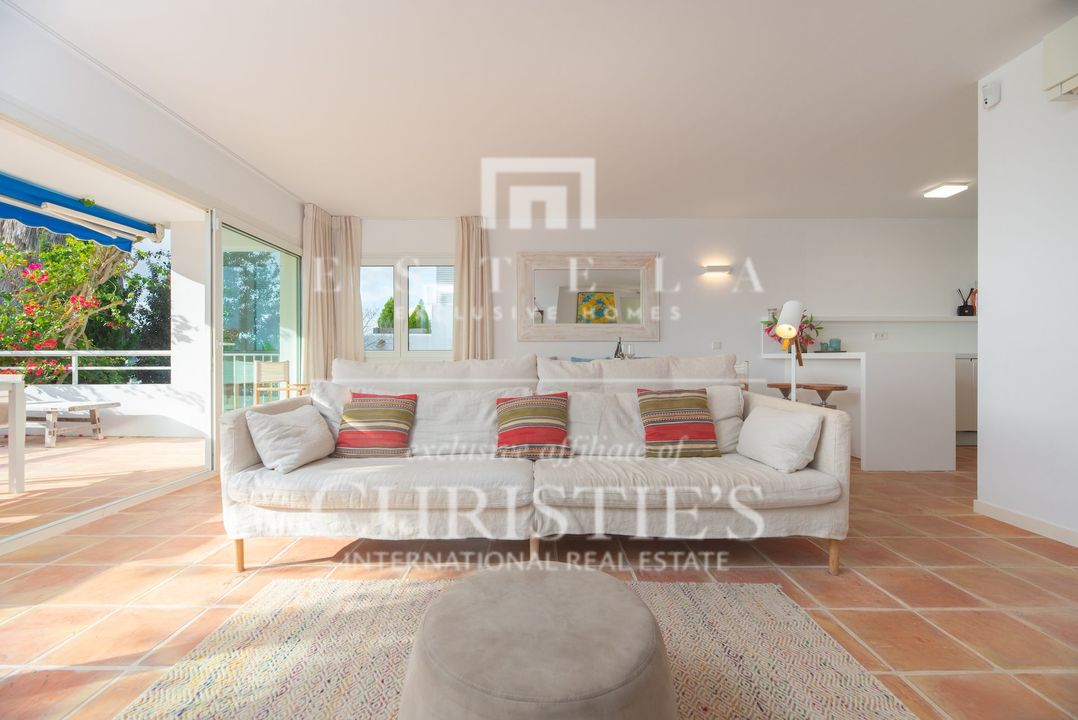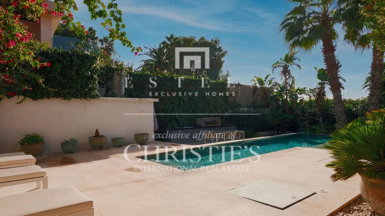 Villa Tropical is situated in one of the most sought-after residential areas of Ibiza: the exclusive Can Pep Simó, just a stone's throw from Jesús and Ibiza Town. This quiet and elegant neighborhood is known for its privacy and panoramic views of Dalt Vila, the harbor, and the Mediterranean Sea. Here, you will live in a refined environment where tranquility and comfort come together, while all amenities, beaches, and the vibrant center of Ibiza are just minutes away. An ideal location for those seeking the best of both worlds: serenity and liveliness, perfectly balanced. This characterful villa combines timeless architecture with a warm, inviting atmosphere and offers a living space designed with attention to space, light, and comfort. Inside, the property features several spacious bedrooms, designed with privacy and calm in mind. The living areas are bright and generously sized, with large windows that ensure a natural flow between indoor and outdoor spaces. The kitchen forms the heart of the home and connects seamlessly to the dining and living areas, ideal for both daily living and entertaining guests. In addition, the villa offers various practical rooms and flexible layout options, making it easy to adapt the house to different lifestyle needs. A harmonious combination of comfort, functionality, and style. The outdoor areas of Villa Can Pep Simó are fully designed to enjoy the Mediterranean lifestyle to the fullest. Several terraces and lounge areas provide space for relaxation at any time of the day. The swimming pool is a central feature, surrounded by sun terraces with stunning views of the sea and surrounding landscape. This villa reflects everything that makes living in Ibiza so attractive: tranquility, space, views, and a strategic location. A property that must not only be seen but truly experienced. A viewing immediately reveals why this home belongs to one of the island's most desirable residential locations.