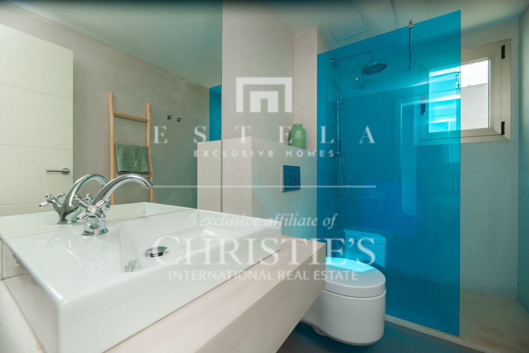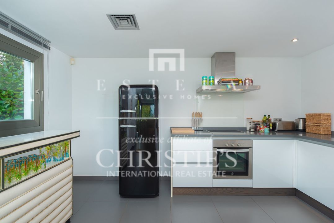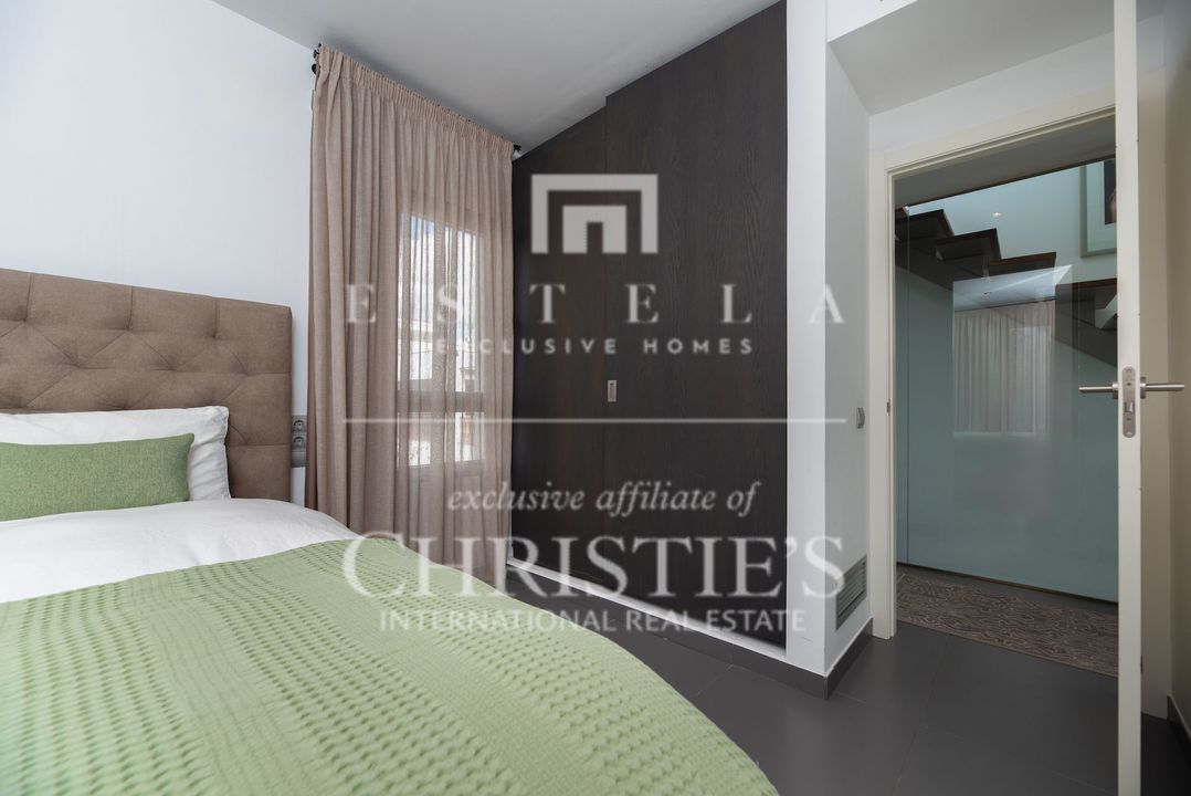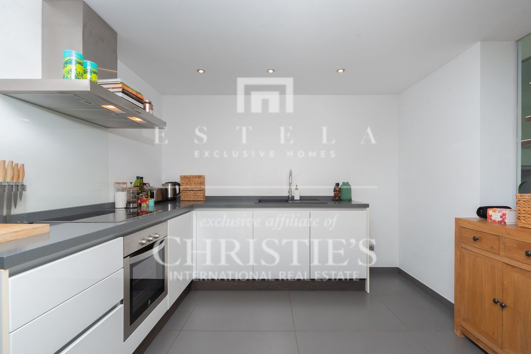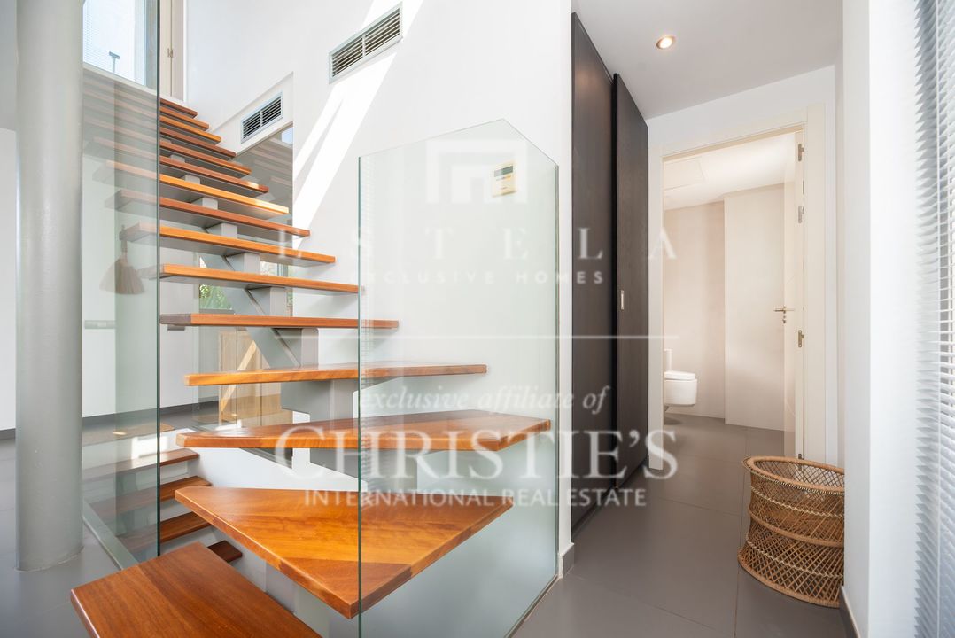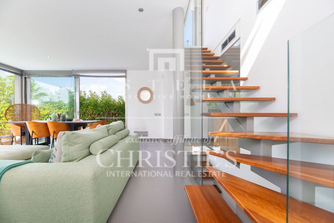 Located in the charming village of Jesús, this modern townhouse offers the perfect balance between tranquility and accessibility. Jesús is a vibrant and popular residential area with amenities open all year round, making it ideal for those seeking a permanent home or long-term stay in Ibiza. Within just a few minutes you can reach Ibiza Town, the exclusive Marina Botafoch and the beloved beaches of Talamanca and S’Estanyol. The village itself exudes Mediterranean charm with cosy restaurants, stylish cafés and boutique shops all within walking distance. Here you can enjoy a relaxed living environment while the energy and charm of the island are always close by. This 178 m² townhouse with 120 m² of outdoor space is designed for comfortable and atmospheric living. On the ground floor, you are welcomed by a bright open-plan living area with warm materials and large sliding doors that beautifully connect indoor and outdoor living. The adjoining dining area and fully equipped kitchen create an inviting space for relaxed meals and social gatherings. Completing this level is a separate guest toilet and direct access to the private garage, ideal for parking and extra storage. On the first floor, you will find three comfortable bedrooms. The master bedroom features an ensuite bathroom and a spacious, serene atmosphere thanks to large windows. The second bedroom has its own balcony, perfect for enjoying the morning sun and peaceful surroundings. The third bedroom is versatile and can serve as a guest room, children’s room or home office. These two bedrooms share a bathroom. All rooms are bright and inviting, with practical layouts that offer flexibility for your personal living needs. The outdoor area surrounding the private pool is designed for relaxation and summer enjoyment. Here you can enjoy sunny days on the loungers, dine outdoors or host cosy evenings with friends and family by the barbecue. The highlight of this property is the spacious rooftop terrace. From here you can enjoy panoramic views over the surroundings and the iconic silhouette of Dalt Vila in the distance – a magical setting for breathtaking sunsets. The rooftop terrace also features an outdoor shower, perfect for cooling off on warm summer days or after a morning yoga session under the blue sky. This townhouse in Jesús offers a relaxed, move-in-ready living experience where indoor and outdoor life blend harmoniously. An ideal home for those seeking comfort, atmosphere and the ultimate Ibiza lifestyle all year round.