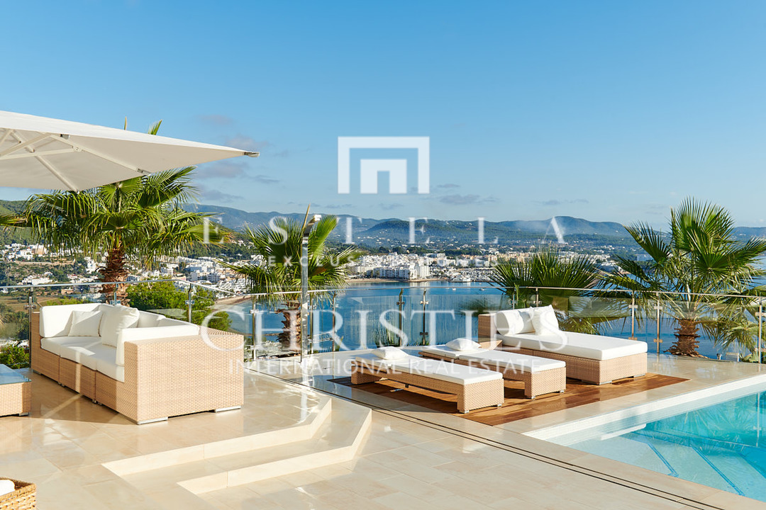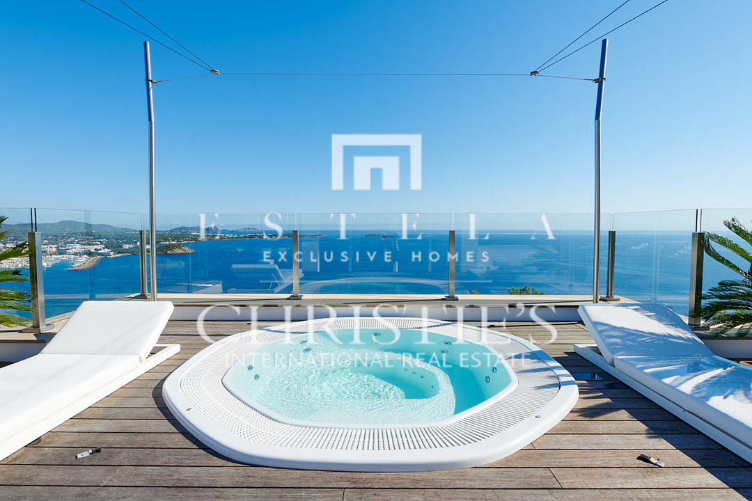 Villa Coconut is a wonderful property with views of the Mediterranean Sea and the Port of Santa Eulalia. This villa is perfect for anyone looking for a home that has it all, from top quality amenities to ultra-modern design, so that guests can experience a comfortable and peaceful getaway in Ibiza. This Bauhaus-inspired paradise boasts a spacious floor plan that includes approximately 725m2 of air-conditioned living space, as well as terraces that provide an additional 340m2 of living space. Here at Villa Coconut you will enjoy a large infinity pool, a rooftop jacuzzi and a private gym. This island getaway is the definition of luxury with its top quality Benz furniture, Smart Home automated systems and state-of-the-art appliances.